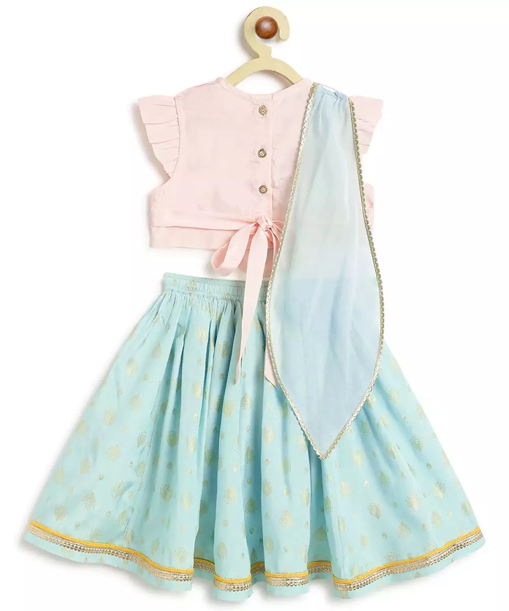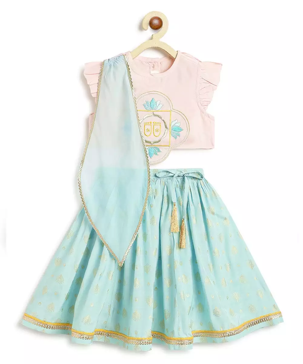 Every Little Girl Loves The Joy Of A Twirl, And This Lehenga Is Designed For Just That: Thanks To The Shoulder Tabs To Keep Her Dupatta In Place! Crafted In Soft Shimmering Cotton Lurex, This Set Is Light, Comfy, And Oh So Festive. With Its Easy Fit, Playful Tassels, And Sparkling Dupatta, It’s The Perfect Pick For Weddings, Pujas, Or Any Special Celebrations.