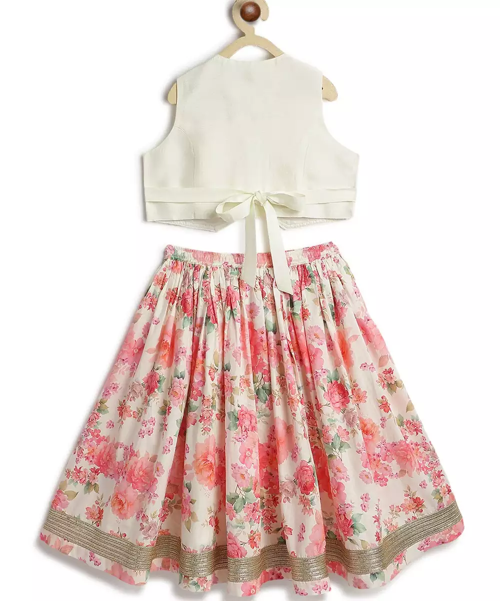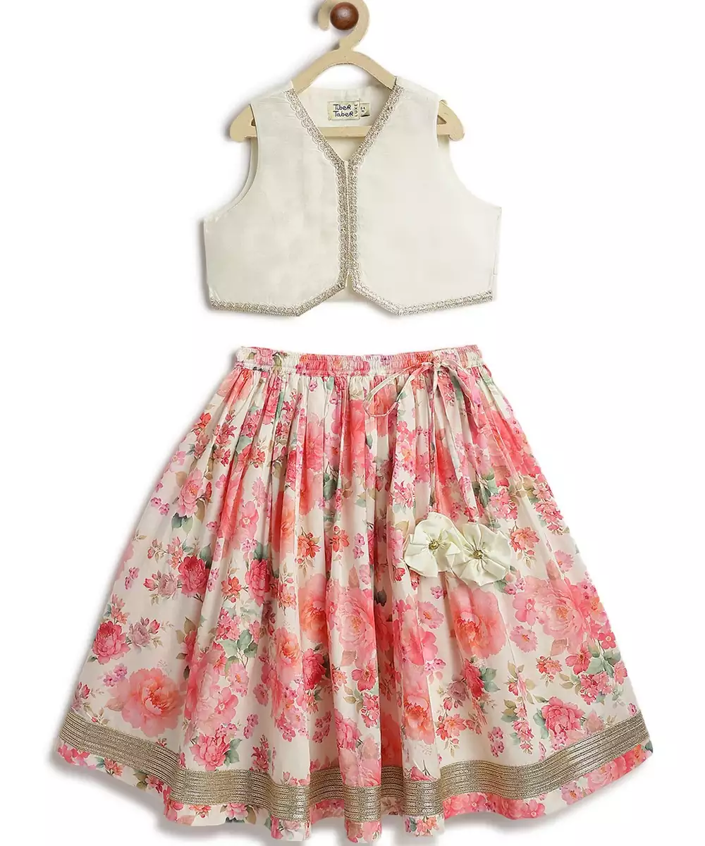 A Festive Outfit That’s As Fun As It Is Fashionable! This 3 Piece Lehenga Set Features The Cutest Blouse, A Floral Lehenga And An Adorable Matching Bandana To Complete The Look. Embellished With Lace And Tassel Accents, It’s Designed For Twirling, Smiling, And Making Memories.