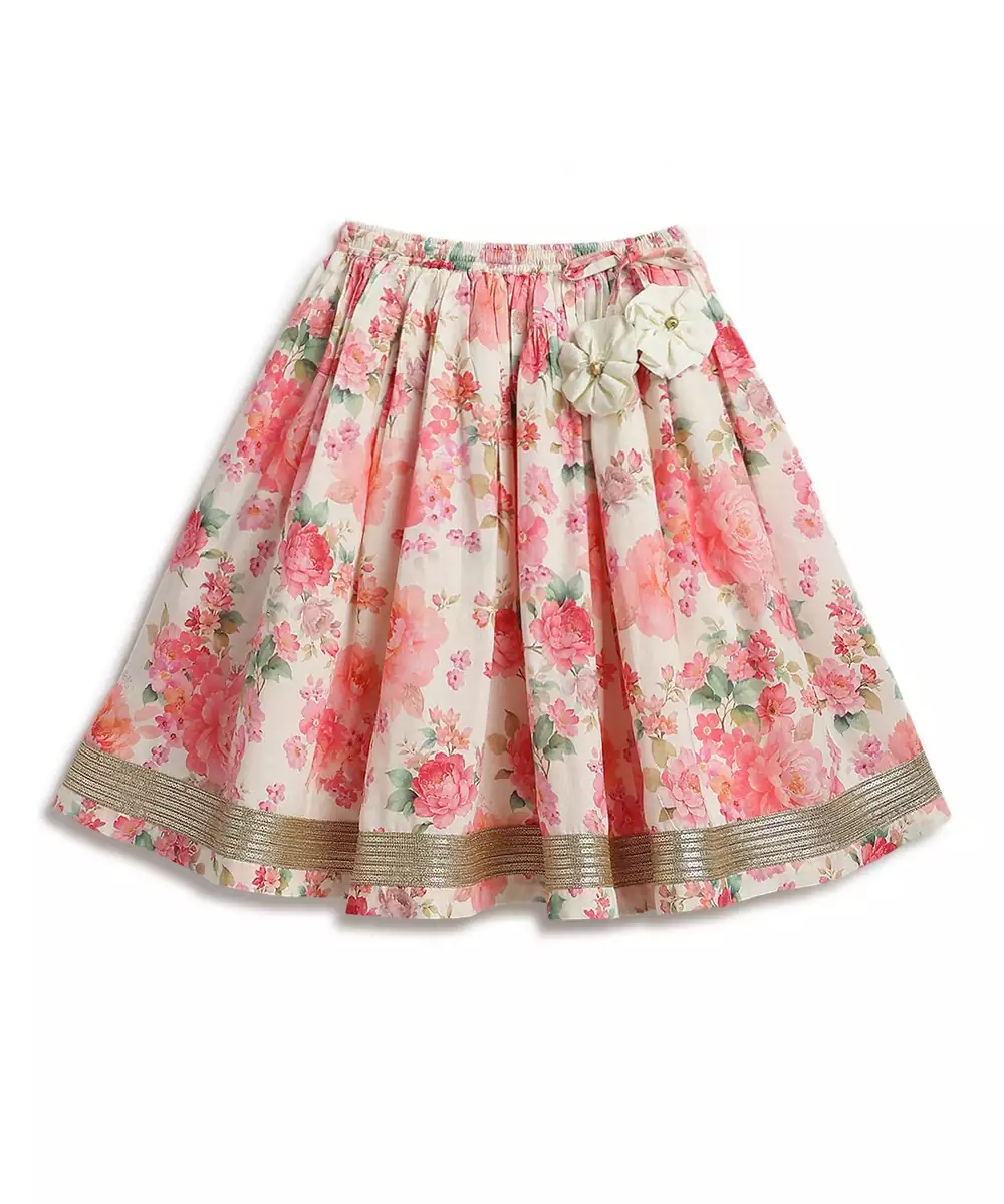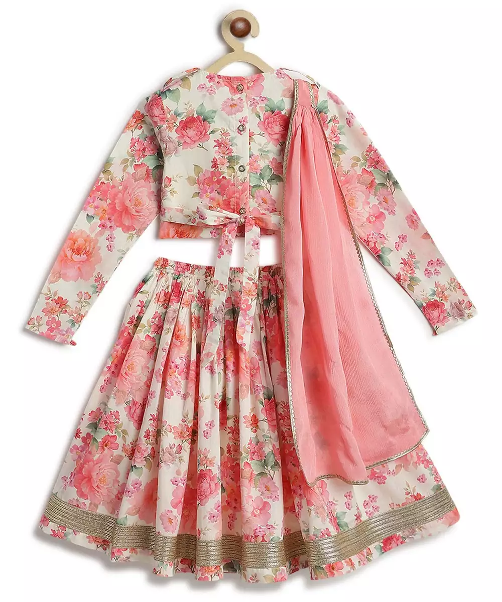 A Lehenga Fit For Your Little Festive Star! This Three Piece Set Features An Embroidered Blouse With Dainty Details, A Soft Cotton Lehenga Printed With Blooming Florals, And A Breezy Dupatta To Twirl In. Finished With Lace And Tassels, It’s Perfect For Weddings, Poojas, And All Things Celebratory.