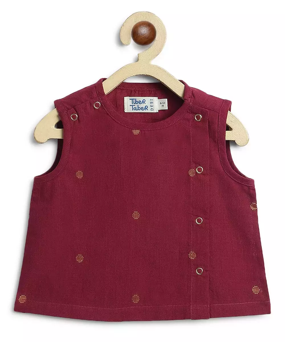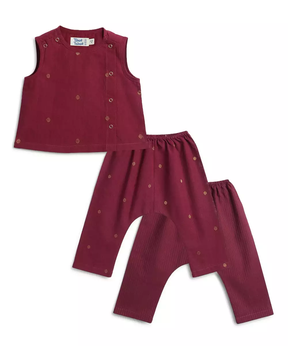 A Blend Of Comfort And Festive Style, This Unisex Jhabla Set Is Made In Our Signature ‘Flat Out’ Design (Opens Flat Like A Mat) Which Facilitates Easy Changing. Made From Soft, Breathable Cotton, The Set Features A Classic Side Tie Jhabla And Matching Pyjama, With Cute Zari Polka Dots. The Relaxed Silhouette Allows For Easy Movement And All Day Comfort Whether It’s For A Pooja, Family Meet And Greet, Or Those First Milestone Photos.
