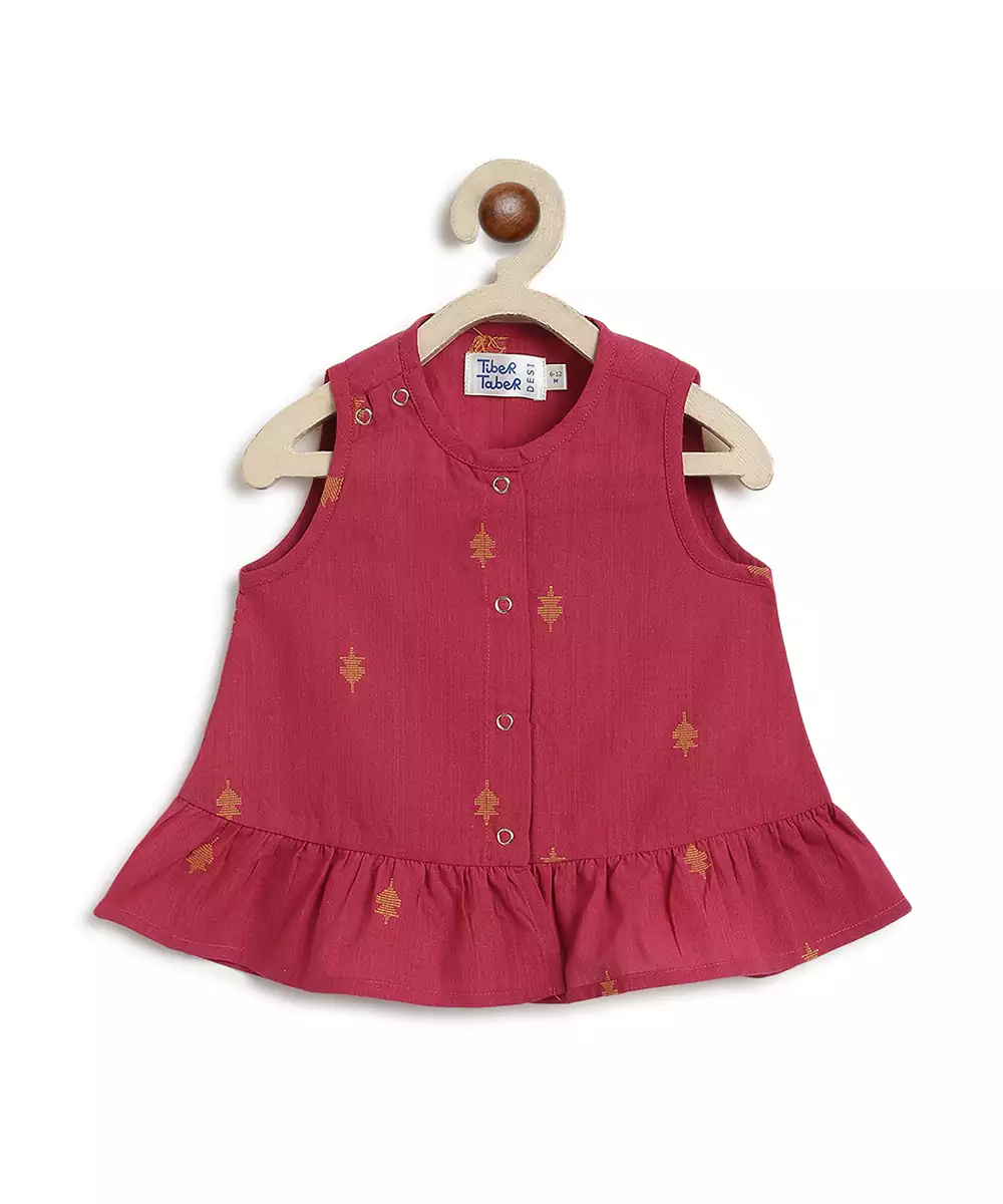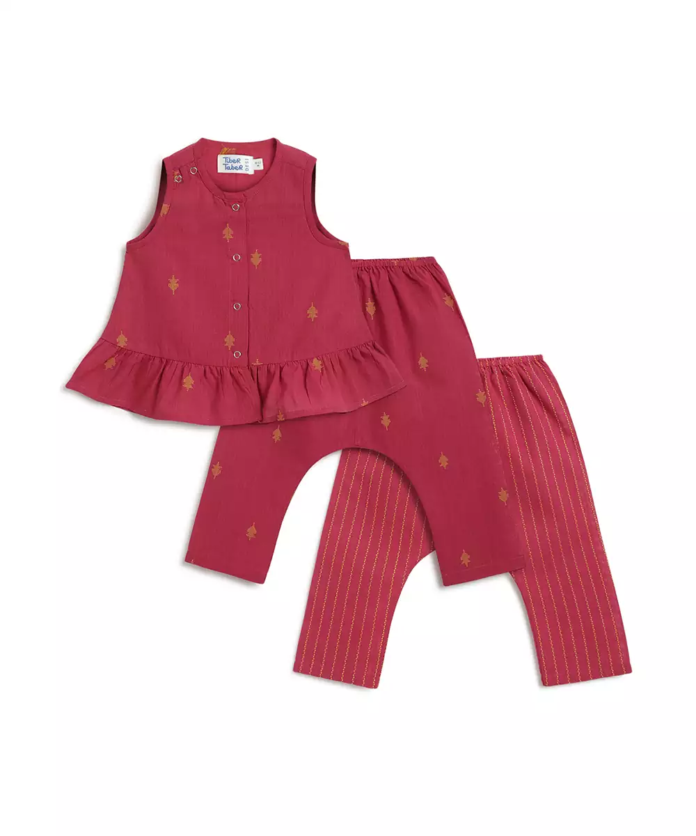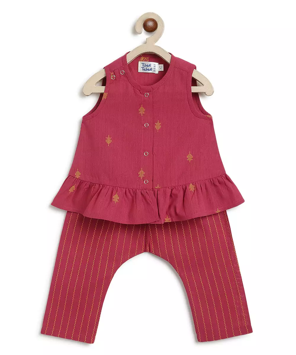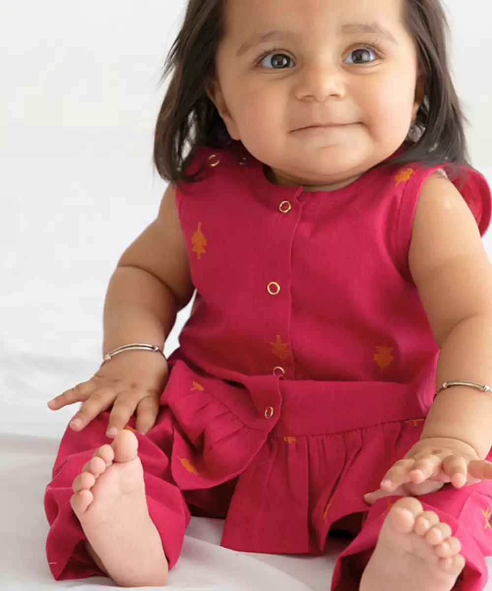 Bold And Stylish, This Red Jacquard Cotton Co Ord Set Stands Out With Its Rich Color And Textured Weave. Crafted For Comfort And Versatility, It Offers A Flattering Fit Suitable For Festive Or Casual Occasions, Making It A Statement Addition To Your Wardrobe.