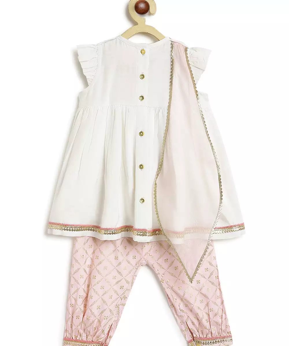 Effortlessly Festive And Undeniably Cute, This Floral Kurta Set Will Surely Fetch Your Little One A Lot Of Compliments. Crafted In Breathable Cotton, The Kurta Features An All Over Print Featuring Big, Bright Roses. Comes With A Full Front Opening For Fuss Free Dressing. Paired With Comfortable Cotton Pants, It's An Ideal Choice For Summer Celebrations, At Home Festivities, Or Weddings.