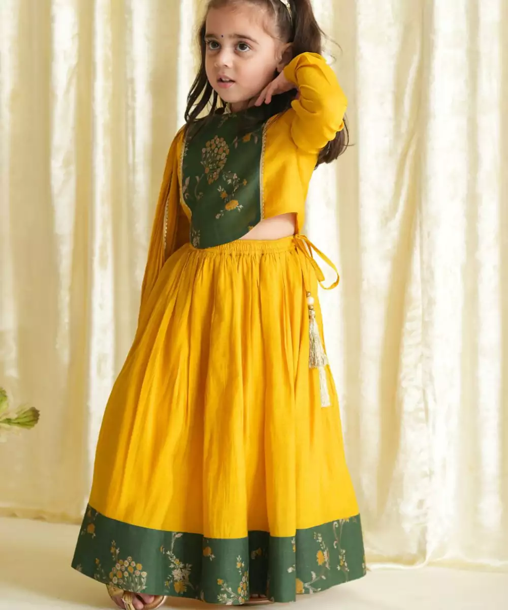 This Yellow Embroidered Brocade Lehenga Set Exudes Regal Elegance And Festive Charm. Crafted From Rich Brocade Fabric, It Features Intricate Embroidery That Adds A Luxurious, Refined Touch. Perfect For Weddings And Grand Celebrations, It Offers A Graceful Silhouette With Timeless Traditional Appeal.
