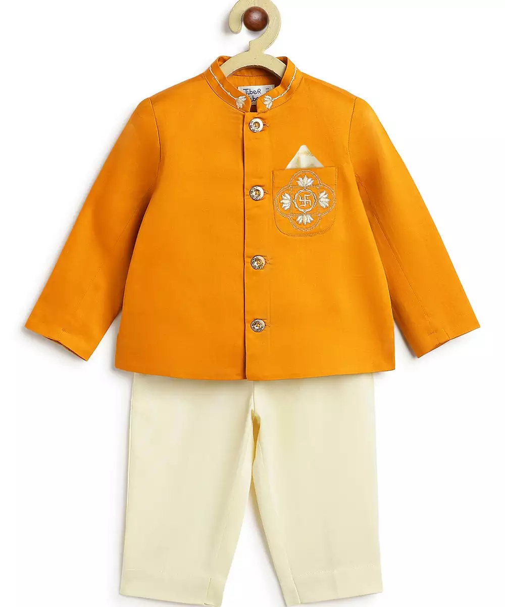 A Fresh Take On Festive Dressing, This Cotton Bandhgala Set Comes With Happy Florals That Scream “Celebration”. Lightweight And Breathable, It’s Perfect For Daytime Celebrations, Pujas, Or Family Get Togethers. An Outfit That Blends Traditional Charm With Everyday Comfort. Thoughtful Details Include Soft Collar, Side Slits And Relaxed Fit.