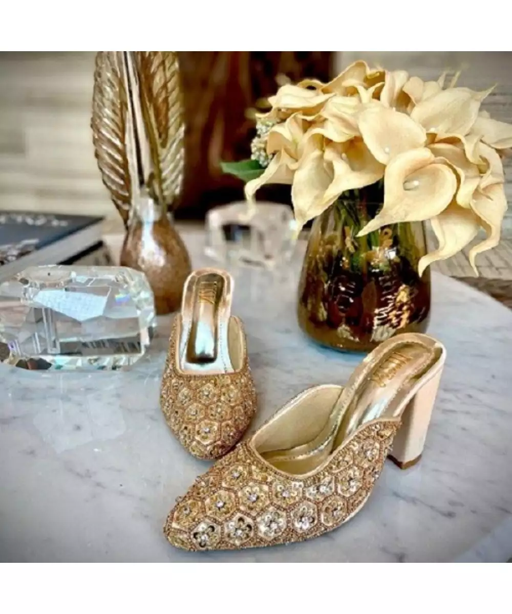 Stella Gold, Hand Embroidered, Gold Blocks Heels