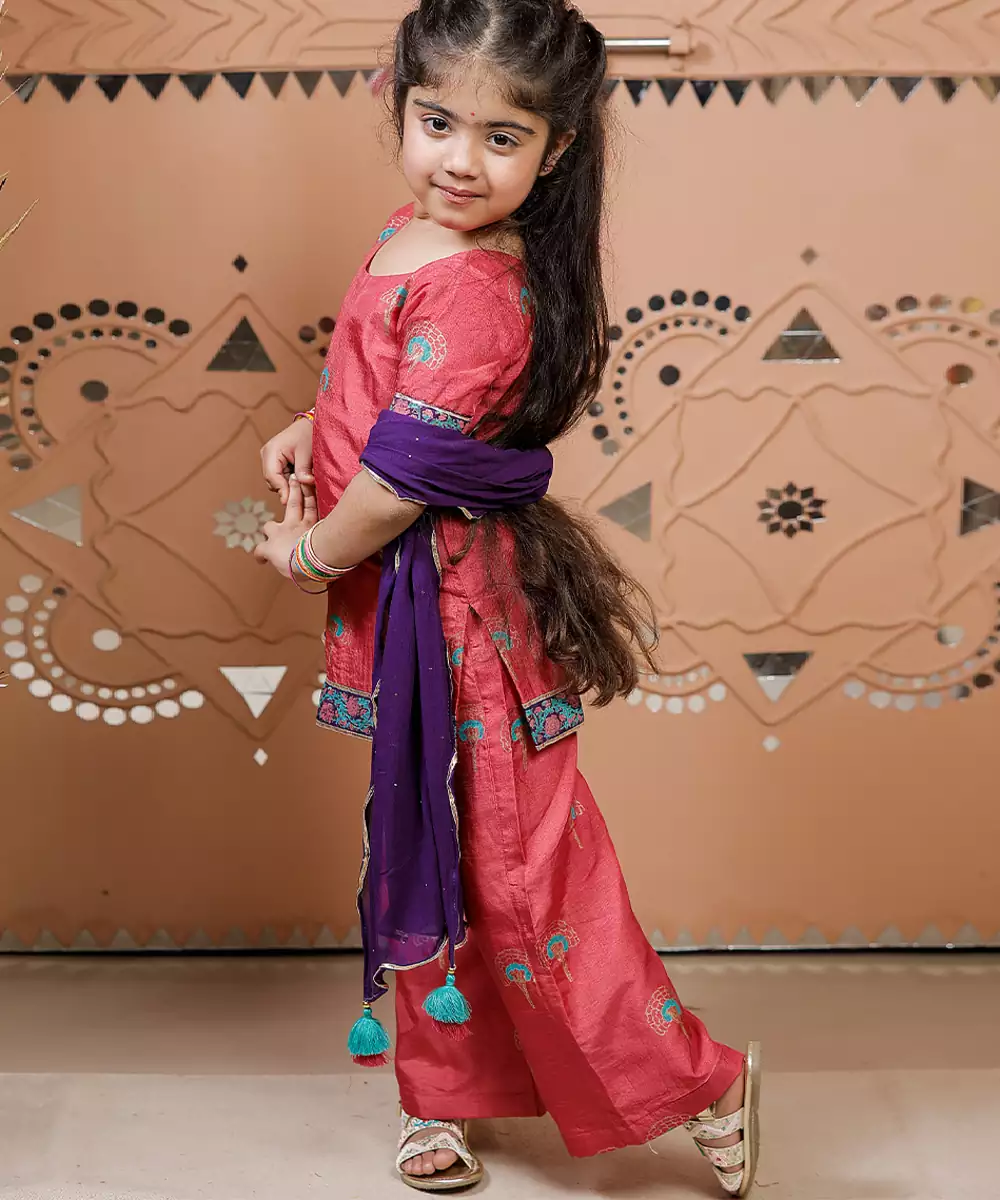 This Pink Dola Silk Kurti Set Showcases Traditional Block Prints That Add Charm And Elegance. The Smooth Fabric Offers A Subtle Sheen, While The Silhouette Ensures Comfort And Style. Perfect For Festive Or Casual Occasions, It Pairs Effortlessly With Minimal Accessories For A Graceful Look.