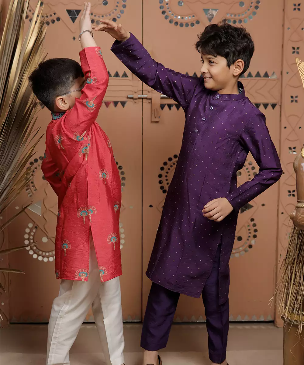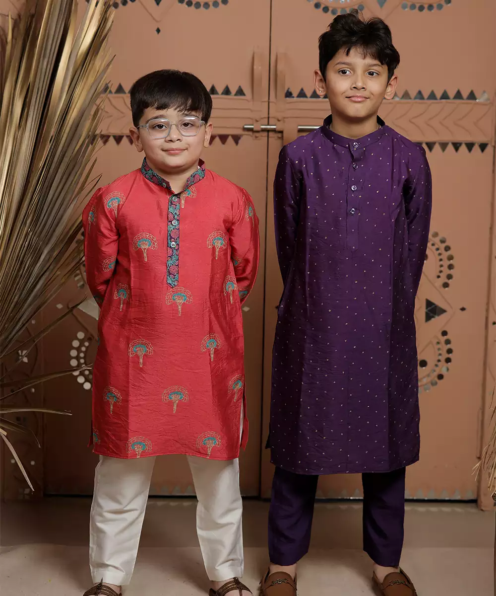 This Purple Modal Kurta Set Features Intricate Embroidery That Adds Elegance And Charm. The Soft, Breathable Fabric Ensures All Day Comfort, While The Silhouette Offers A Flattering Fit. Perfect For Festive Occasions, It Pairs Beautifully With Traditional Accessories For A Refined And Timeless Look.