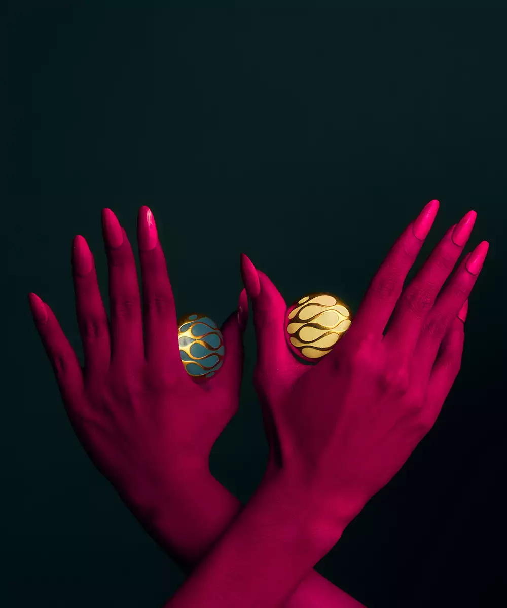Features A 18 K Gold Plated Moh Maya Necklace , With White Enamel Accents.