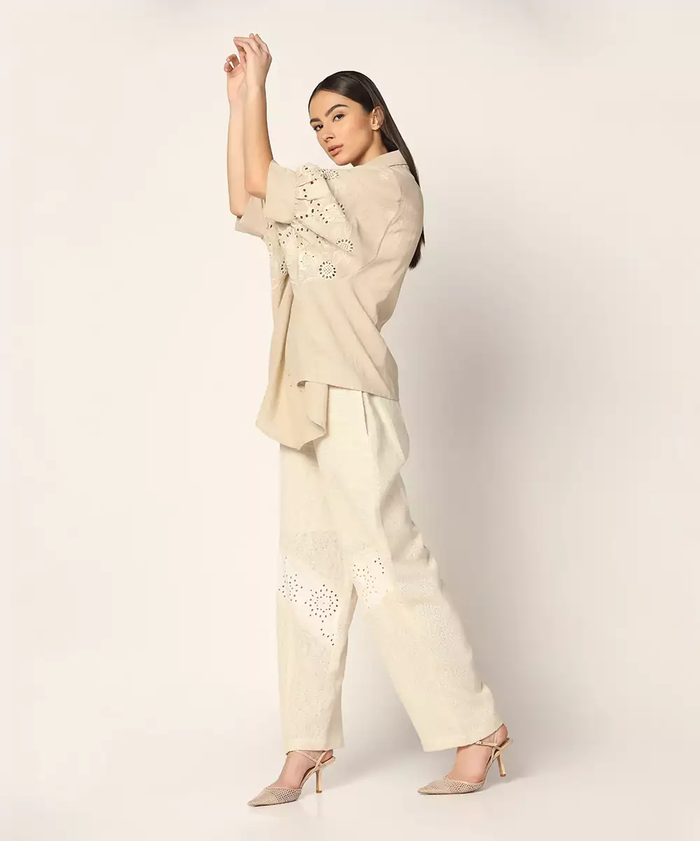 Featuring Beige Cotton Shirt Top Summer Pret Wear