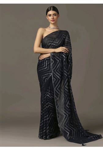 Embrace Dazzling Sophistication With This Exquisite Saree Featuring All Over Monotonal Classic Black Sequin Detailing And A Border Adorned With Soft Gold Swarovski Crystals. This Timeless Classic Combines The Brilliance Of Sequins With The Opulence Of Swarovski Crystals,Both Shimmery And Matte. It Is Paired With An Unstitched Blouse In The Same Colour Sporting The Two Borders Of Crystalline Work, Same As The Saree.