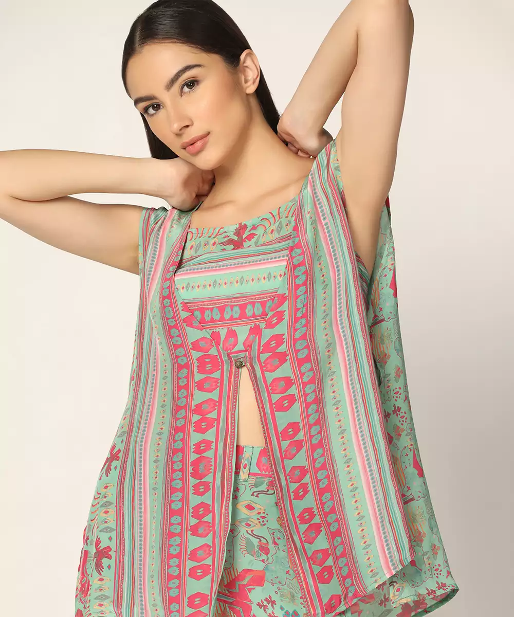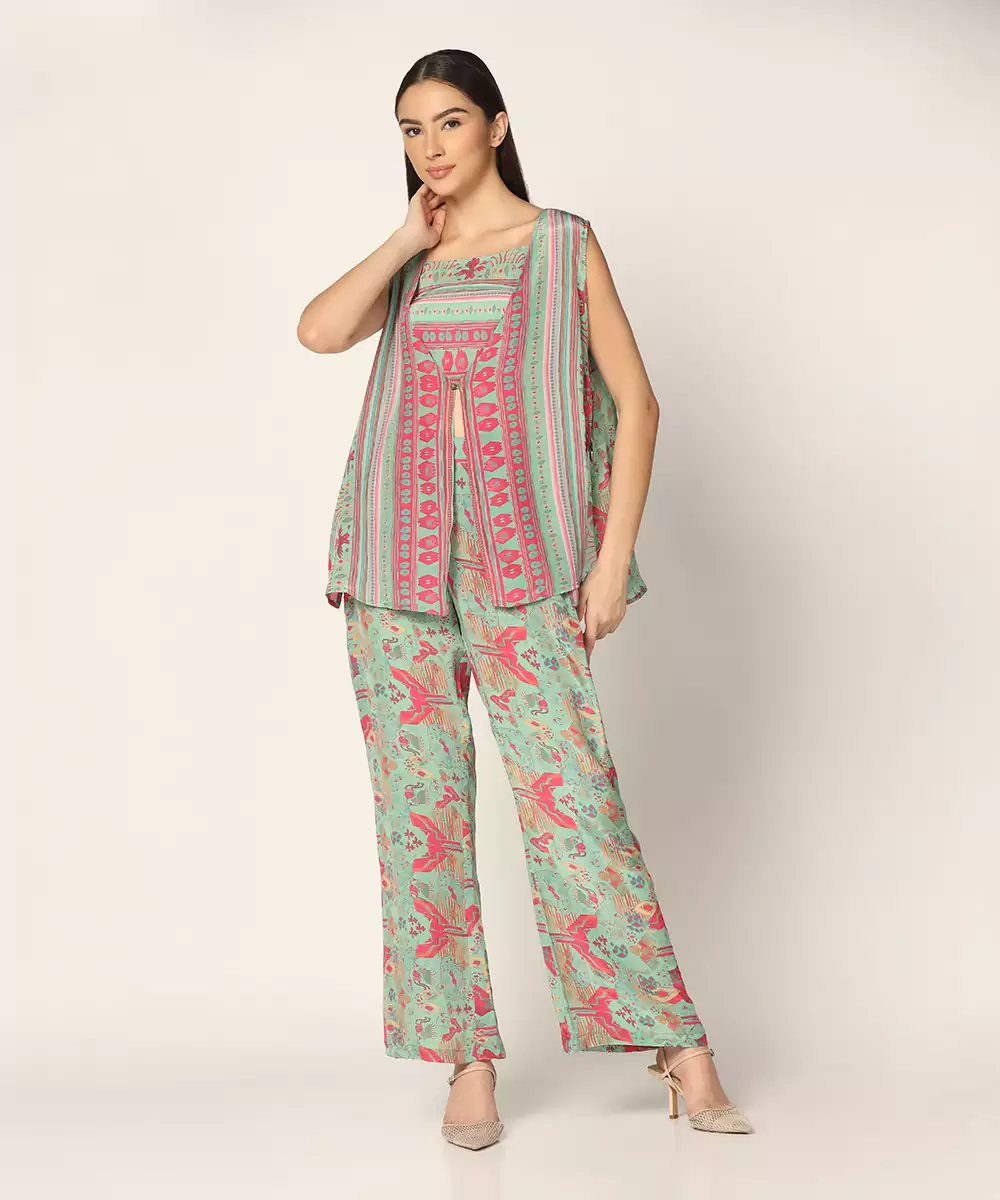 Featuring Mint And Pink Crepe Co Ord Set (Pant , Bustier, Jacket) Summer Pret Wear
