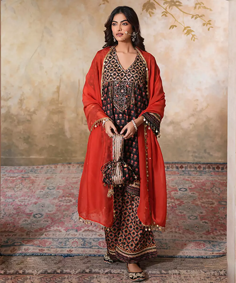 Black Silk Embroidered Potli Bag Crafted With A Rich, Glossy Finish. Detailed With Intricate Embroidery That Adds Elegance And Sophistication. Finished With Drawstring Ties And Decorative Tassels, This Potli Is Perfect For Festive Occasions, Weddings, And Evening Celebrations, Complementing Traditional And Fusion Outfits Beautifully.