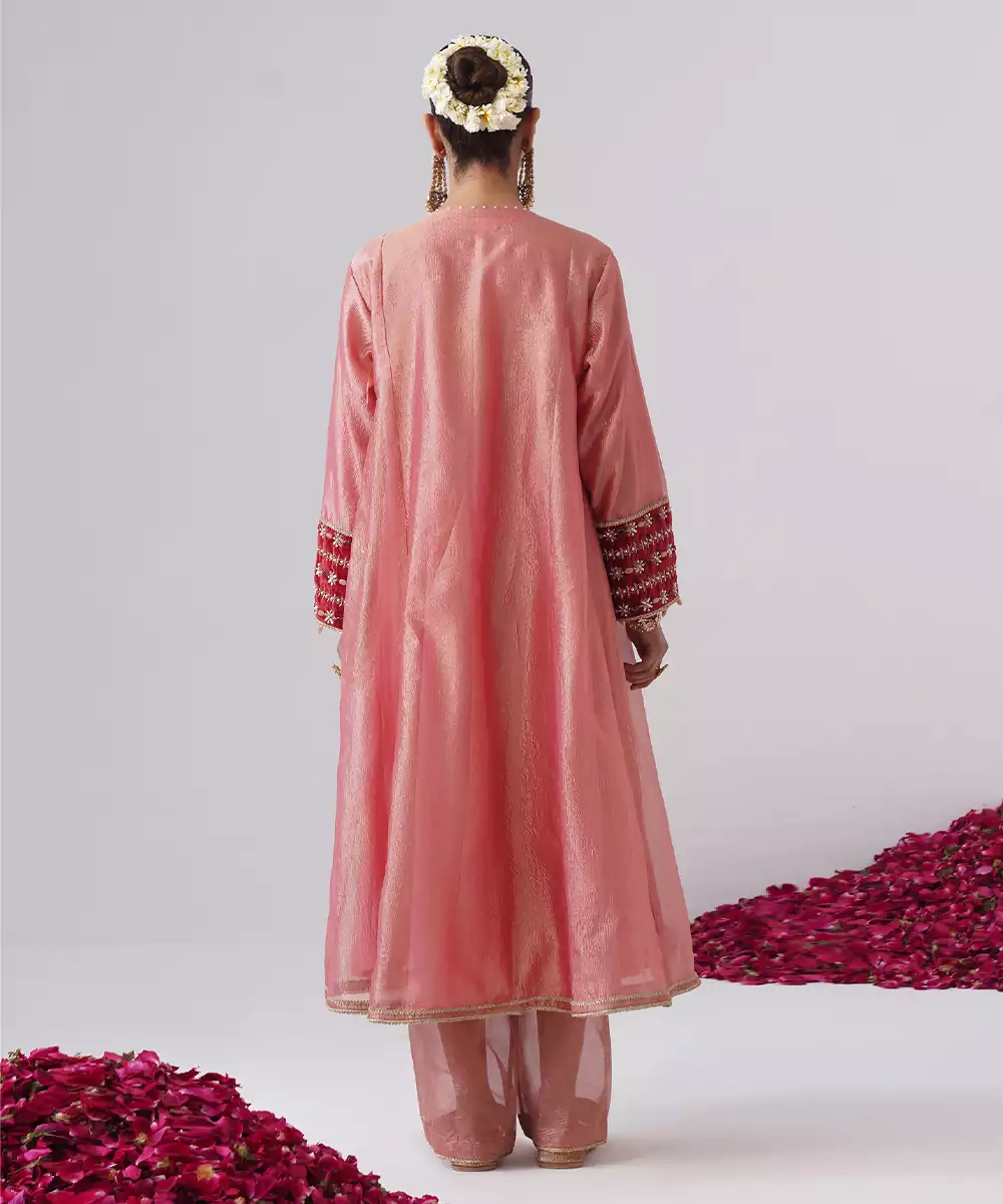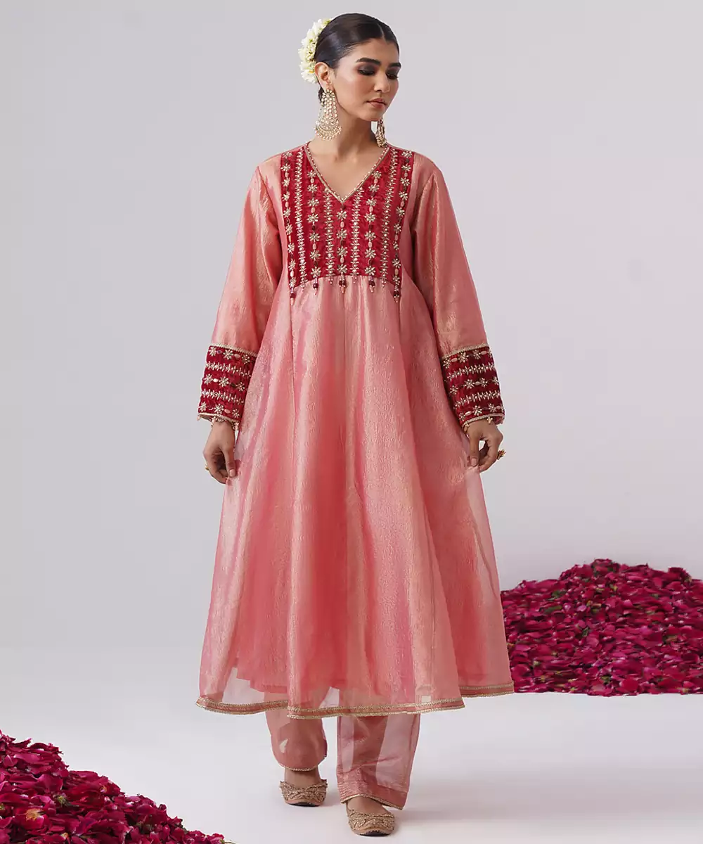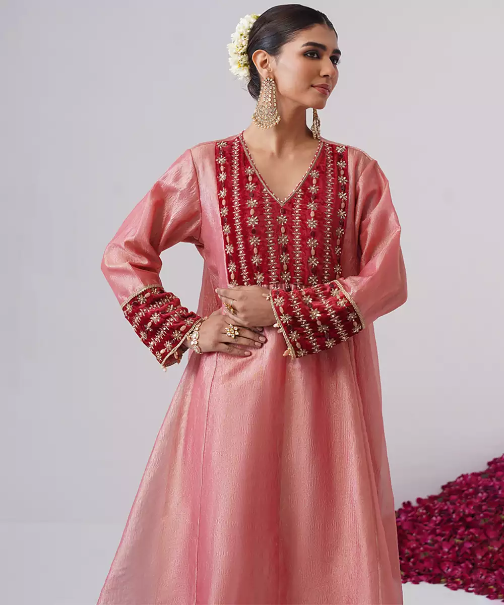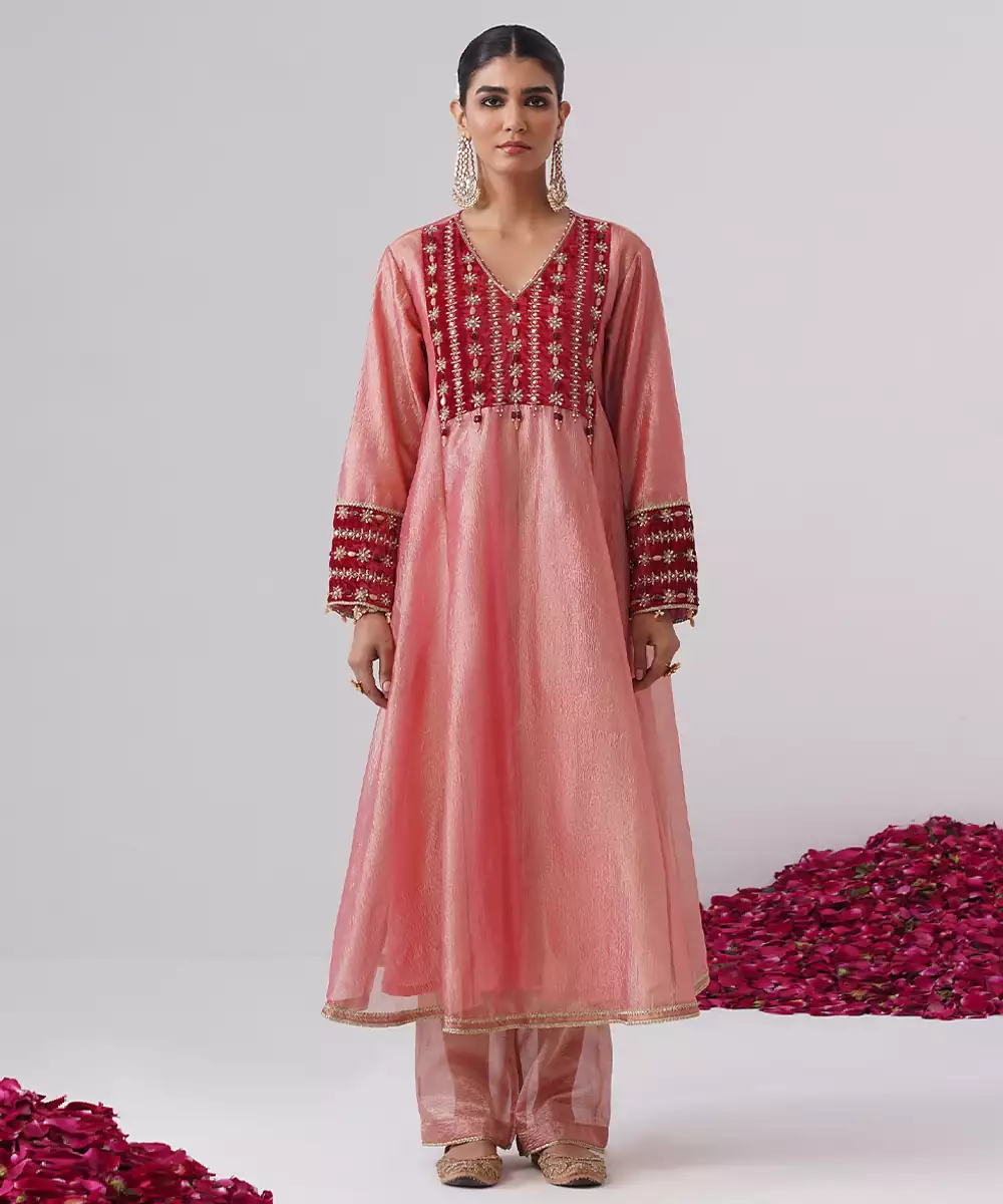 This Pink Embroidered Silk Kurta Set Exudes Graceful Elegance And Festive Charm. Crafted From Rich, Lustrous Silk, It Features Intricate Embroidery That Adds A Refined, Traditional Touch. Perfect For Celebrations And Special Occasions, It Offers A Flattering Silhouette, Luxurious Comfort, And Timeless Ethnic Appeal.