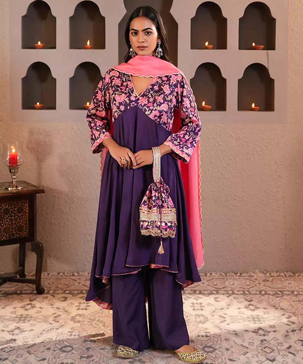 Add A Touch Of Royal Flair To Your Wardrobe With This Exquisite Purple Silk Embroidered Potli Bag. Featuring Intricate Floral Embroidery On A Base Of Rich, High Quality Silk, This Bag Is A Masterpiece Of Traditional Craftsmanship. Finished With Ornate Golden Tassels And A Comfortable Wrist Handle, It Is The Ultimate Accessory For Weddings, Receptions, And Gala Dinners.