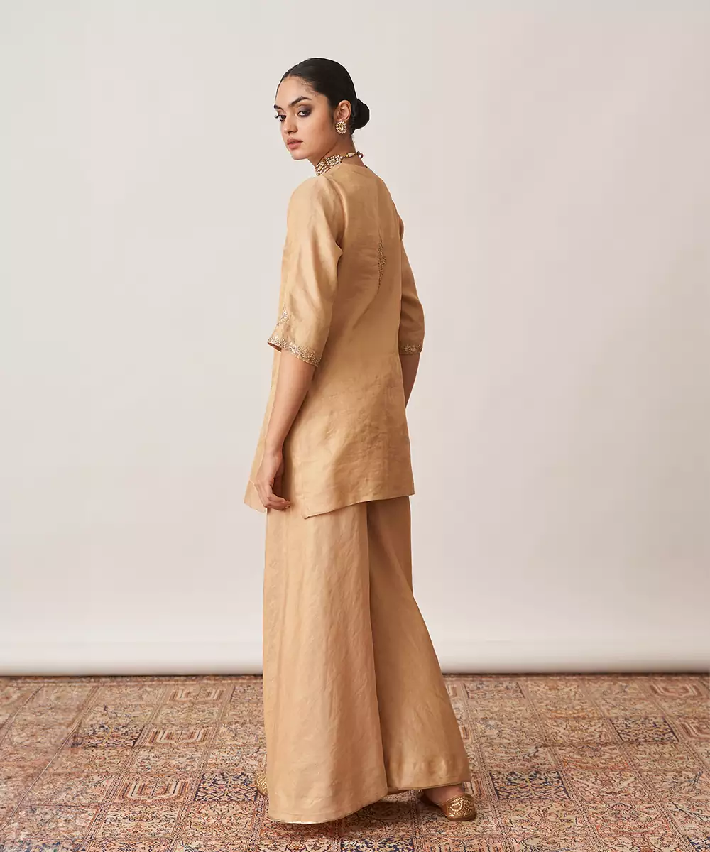 Crafted For Those Who Appreciate Understated Opulence, Our Gold Gharara Set Is Made From Luxurious Handwoven Silk Tissue Chanderi.