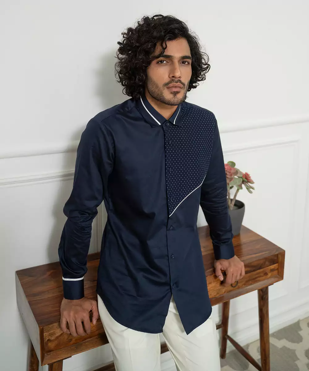 Sundown Blue Streak Shirt Streak Shirt With Style Lines Into Piping Carefully Being Placed To Give A Formal Aesthetic.