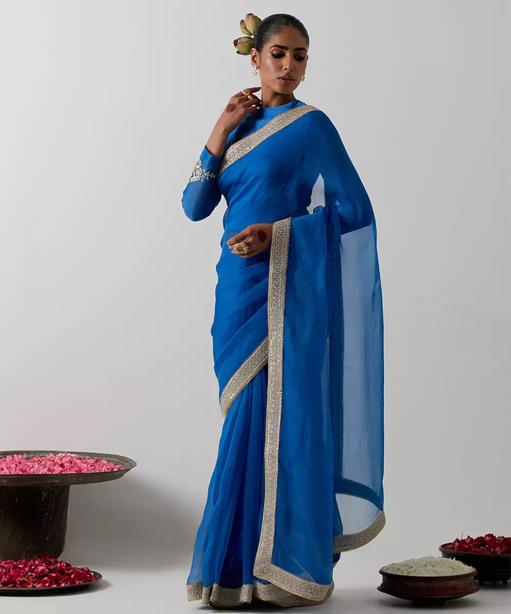 This Blue Plain Chanderi Saree Offers Timeless Elegance With Its Soft Sheen And Lightweight Drape. Crafted From Premium Chanderi Fabric, It Delivers Comfort And Sophistication In A Minimal, Graceful Style. Perfect For Festive Occasions, Traditional Functions, Or Daytime Events, This Saree Embodies Classic Beauty With Understated Charm.