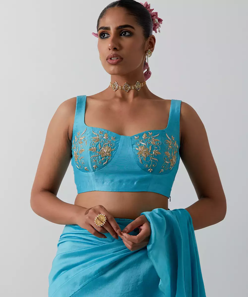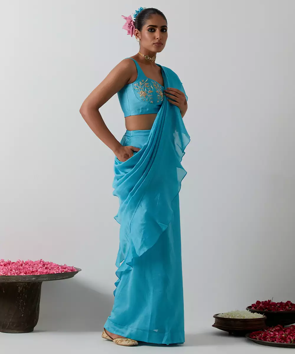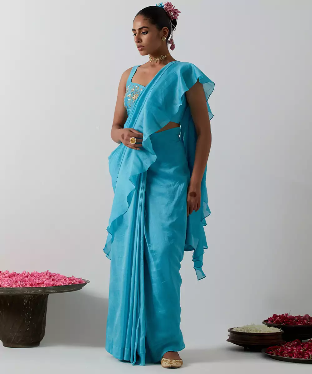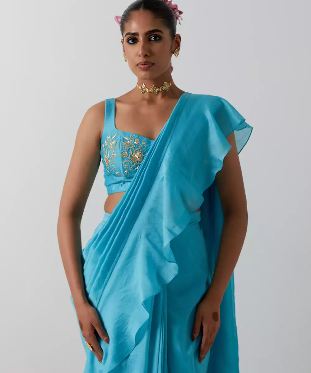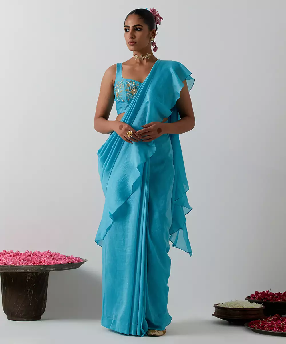 This Blue Plain Chanderi Saree Offers Timeless Elegance With Its Soft Sheen And Lightweight Drape. Crafted From Premium Chanderi Fabric, It Delivers Comfort And Sophistication In A Minimal, Graceful Style. Perfect For Festive Occasions, Traditional Functions, Or Daytime Events, This Saree Embodies Classic Beauty With Understated Charm.
