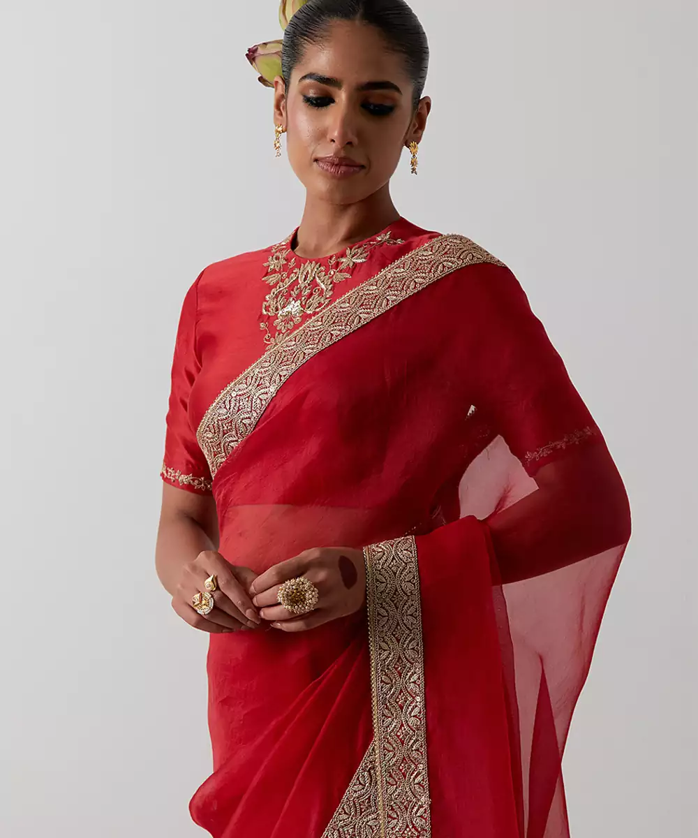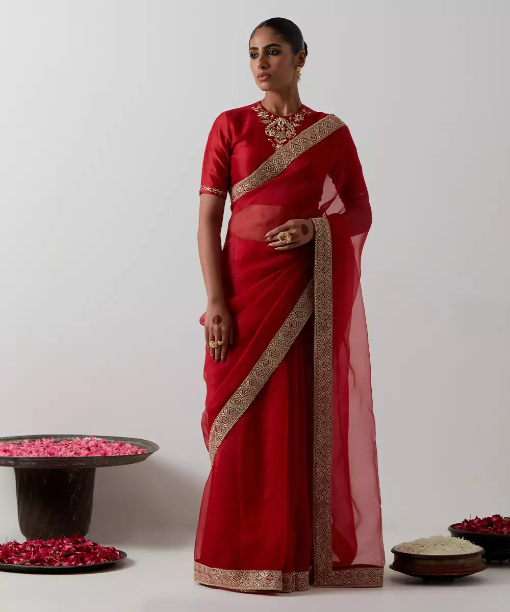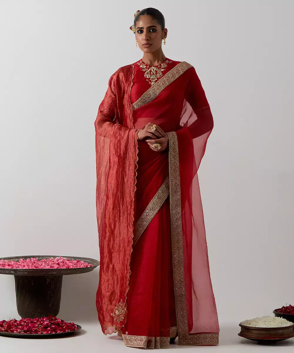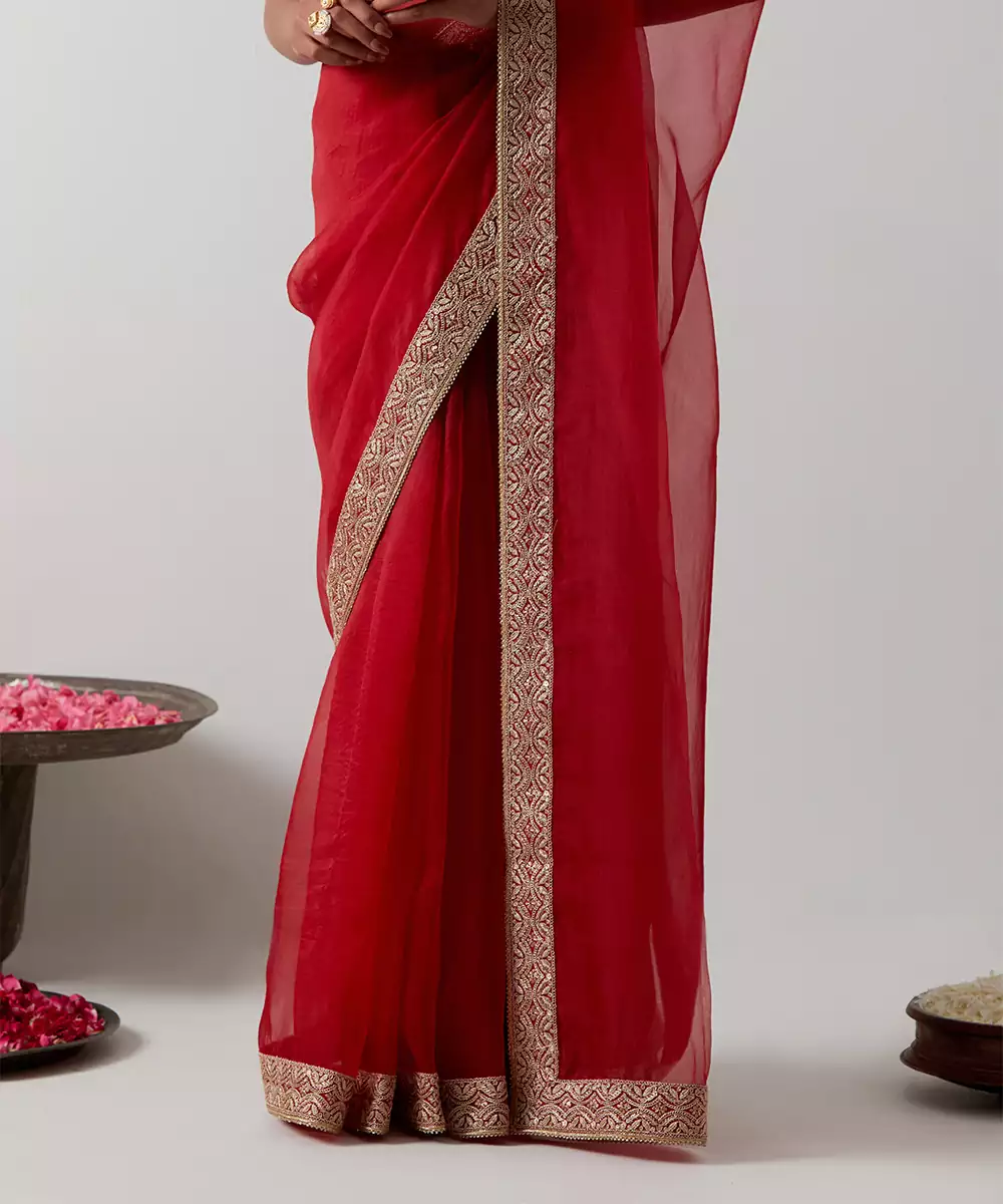 This Red Embroidered Chanderi Saree Exudes Traditional Elegance With Its Rich Hue And Intricate Embroidery. Crafted From Lightweight Chanderi Fabric, It Offers A Soft Sheen And Graceful Drape. Perfect For Weddings, Festive Events, And Celebrations, This Saree Beautifully Blends Timeless Craftsmanship With Refined Sophistication.