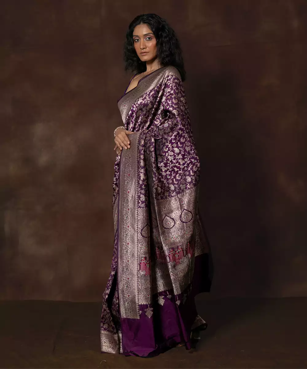 Purple Hand Woven Banarsi Silk Brocade Saree With Running Blouse