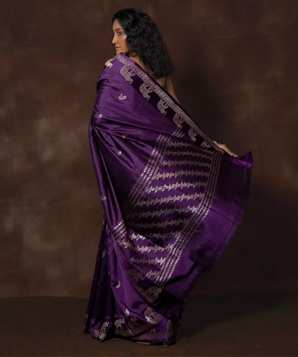 Purple Hand Woven Banarsi Silk Brocade Saree With Running Blouse Colour: Purple Fabric: Banarasi Silk Components : 1 Saree / 1 Blouse