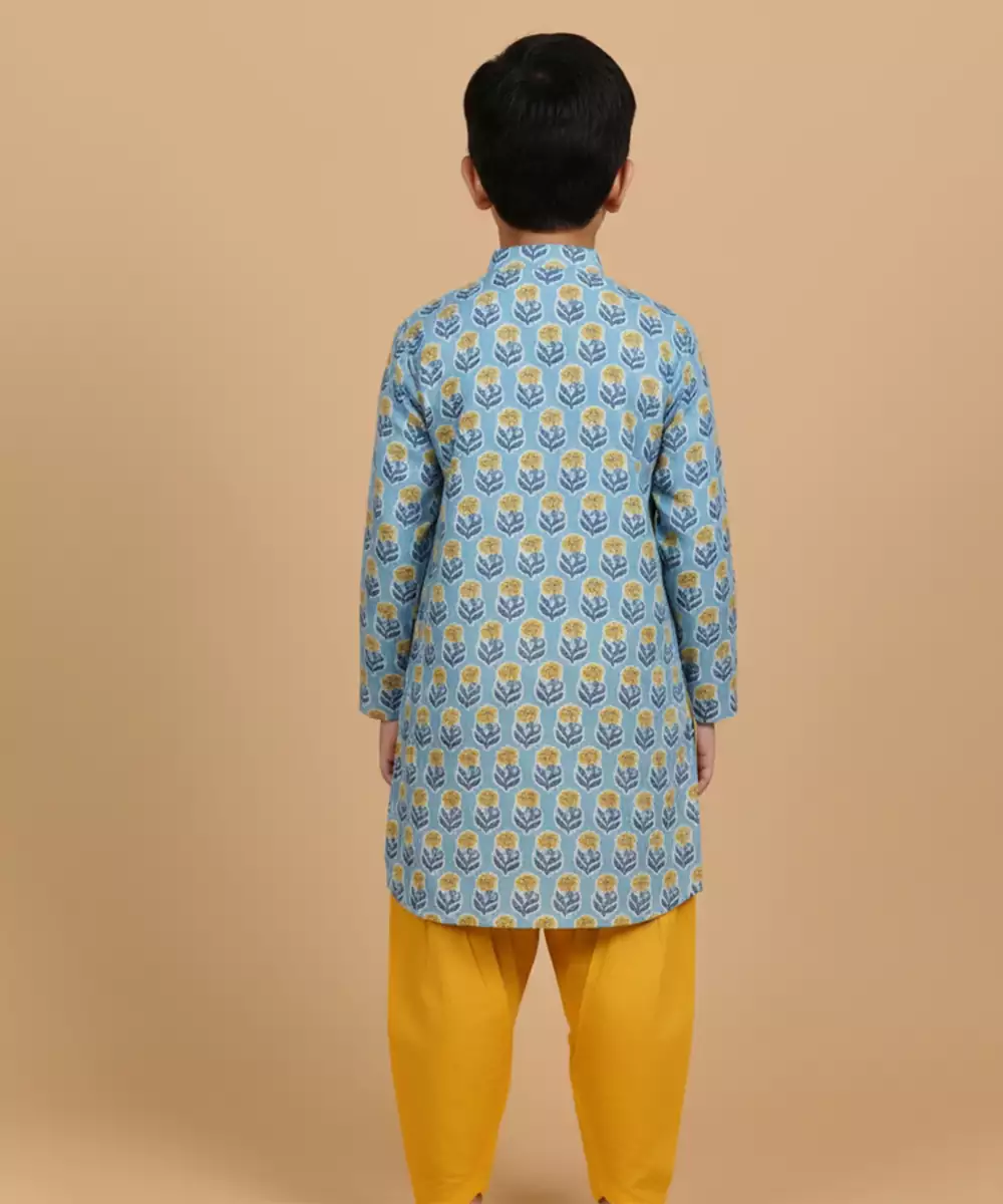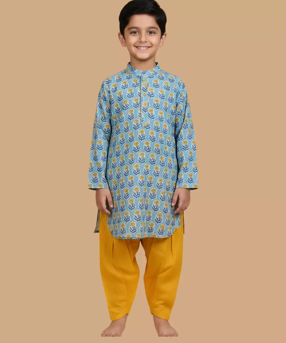 This Blue Printed Cotton Kurta Pyjama Set Combines Comfort With Understated Elegance. Made From Soft, Breathable Cotton, It Features Subtle Prints That Add A Stylish Touch. Ideal For Festive Gatherings Or Casual Occasions, It Offers A Relaxed Fit, All Day Comfort, And Timeless Ethnic Appeal.