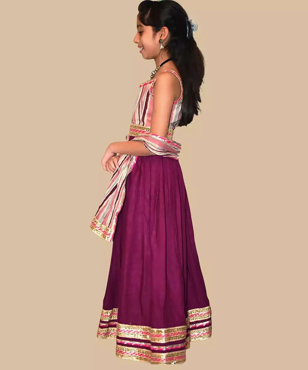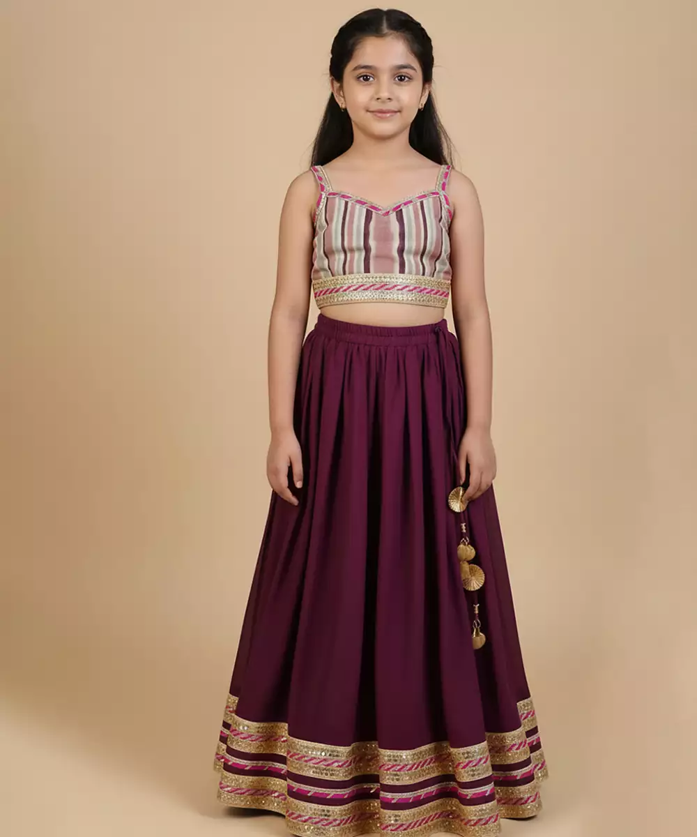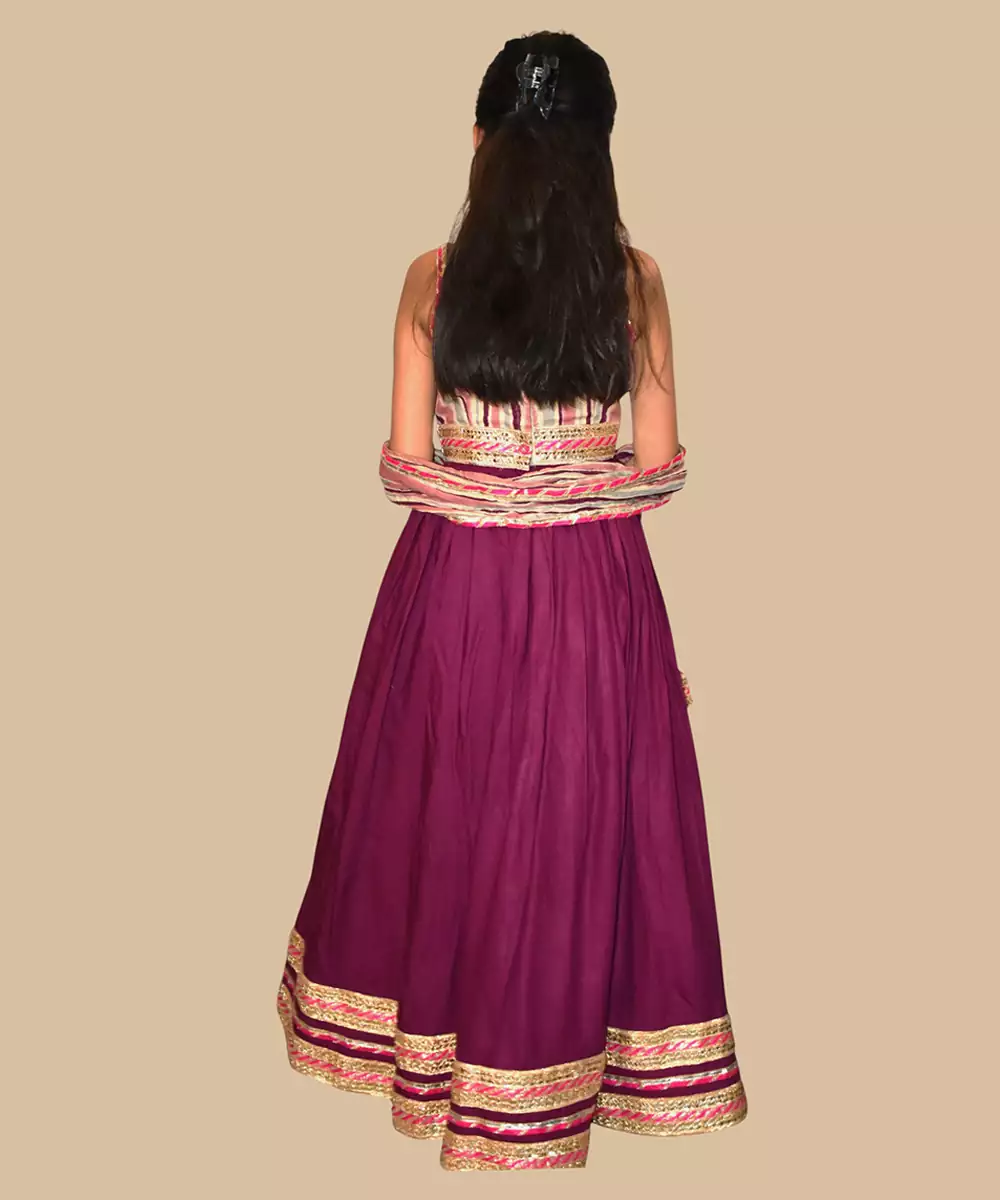 This Burgundy Embroidered Cotton Lehenga Set Radiates Rich Elegance And Festive Charm. Crafted From Soft, Breathable Cotton, It Features Intricate Embroidery That Adds Depth And Sophistication. Perfect For Weddings And Celebrations, It Offers A Graceful Silhouette, Comfortable Wear, And Timeless Ethnic Appeal.