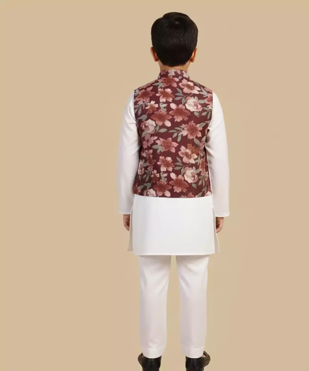 This Burgundy Printed Cotton Nehru Jacket Set Blends Classic Tradition With Modern Sophistication. Crafted From Breathable Cotton, It Features Elegant Prints And A Structured Silhouette For A Refined Look. Perfect For Festive Occasions And Celebrations, It Offers Comfort, Style, And Timeless Ethnic Charm.