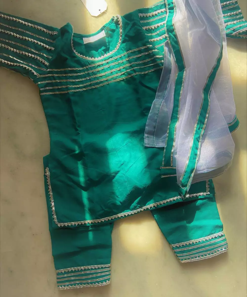 This Teal Coloured Kurta Pyjama Has Been A Dream Come True For All The Mums Out There Who Have Been Wanting To Get Their Girls Dressed In Ethnic Yet Comfortable Wear. Fabric Cotton