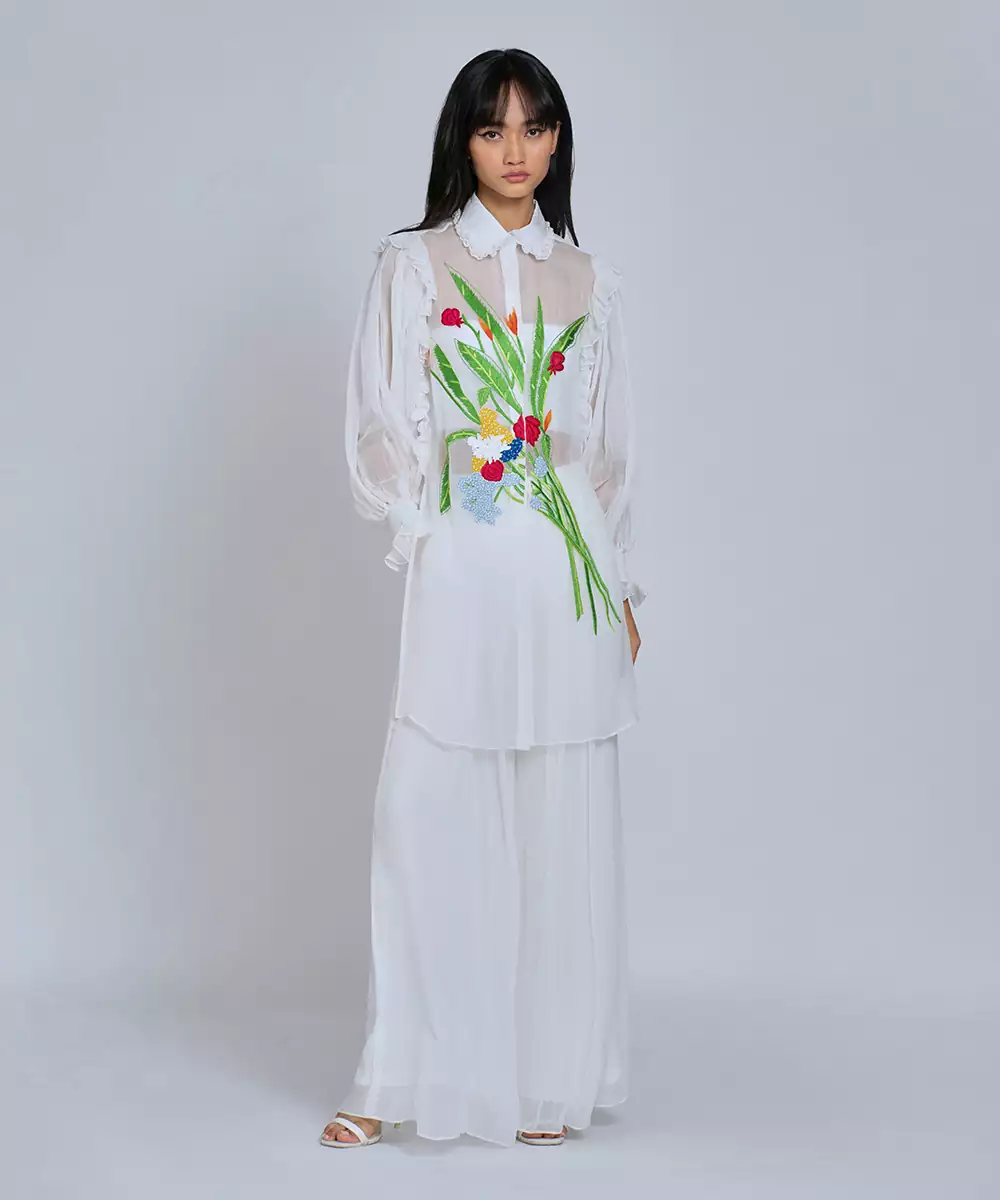 Inspired By Gorgeous Blooms, This Shirt Features Hand Embroidered Flowers On The Front And Can Be Styled In The Most Versatile Ways. Wear It As A Shirt Dress, Or Pair With Shorts Or Pants. Comes With A Satin Inner.