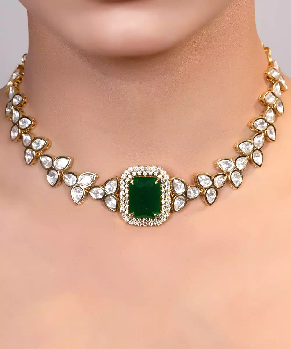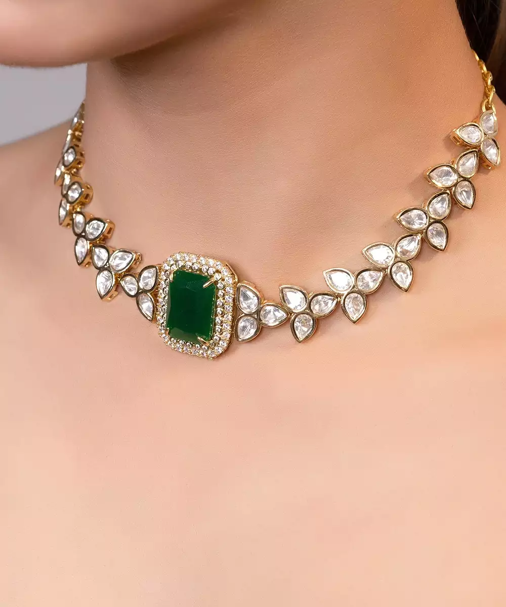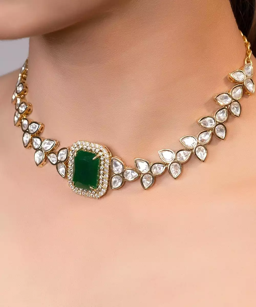 Gold Plated Kundan Green Stones Choker Necklace