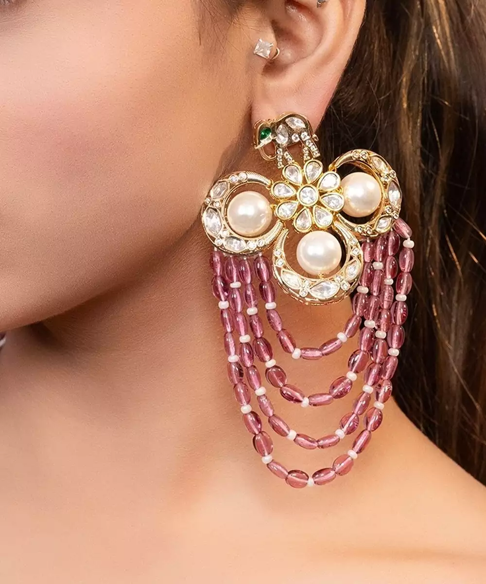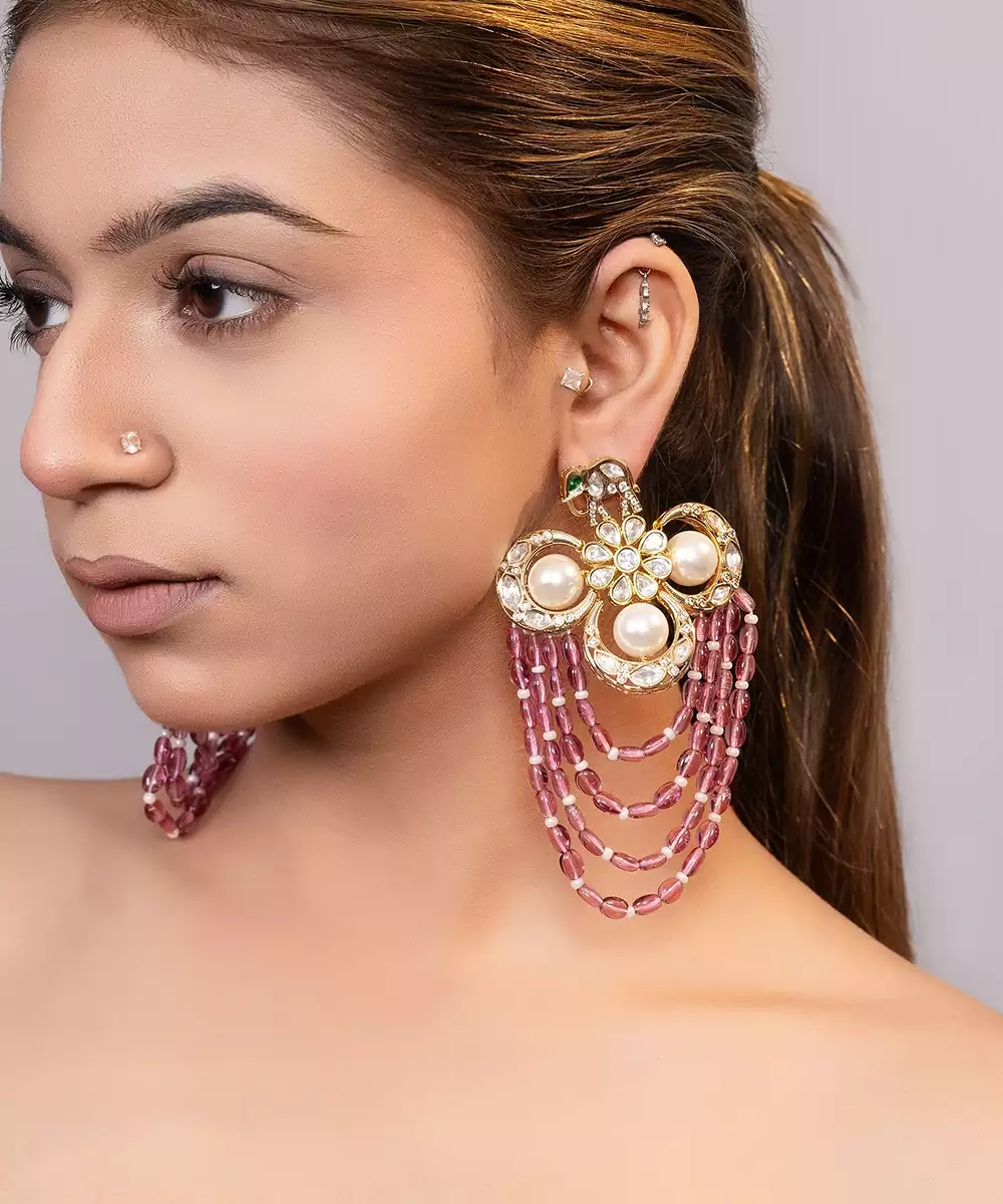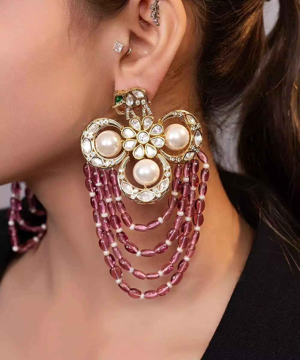 This Gold Plated Kundan Red Stone Drop Earrings Showcase Vibrant Elegance And Traditional Craftsmanship. Crafted With A Radiant Gold Finish And Adorned With Kundan Work And Colorful Stones, They Add A Rich, Eye Catching Touch. Perfect For Festive Occasions, They Offer Graceful Movement And Timeless Ethnic Charm.