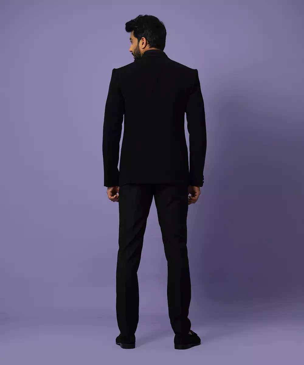 Featuring A Black Suit Set Embroidered With Pintucks & Cutdana Work Paired With Black Trousers.