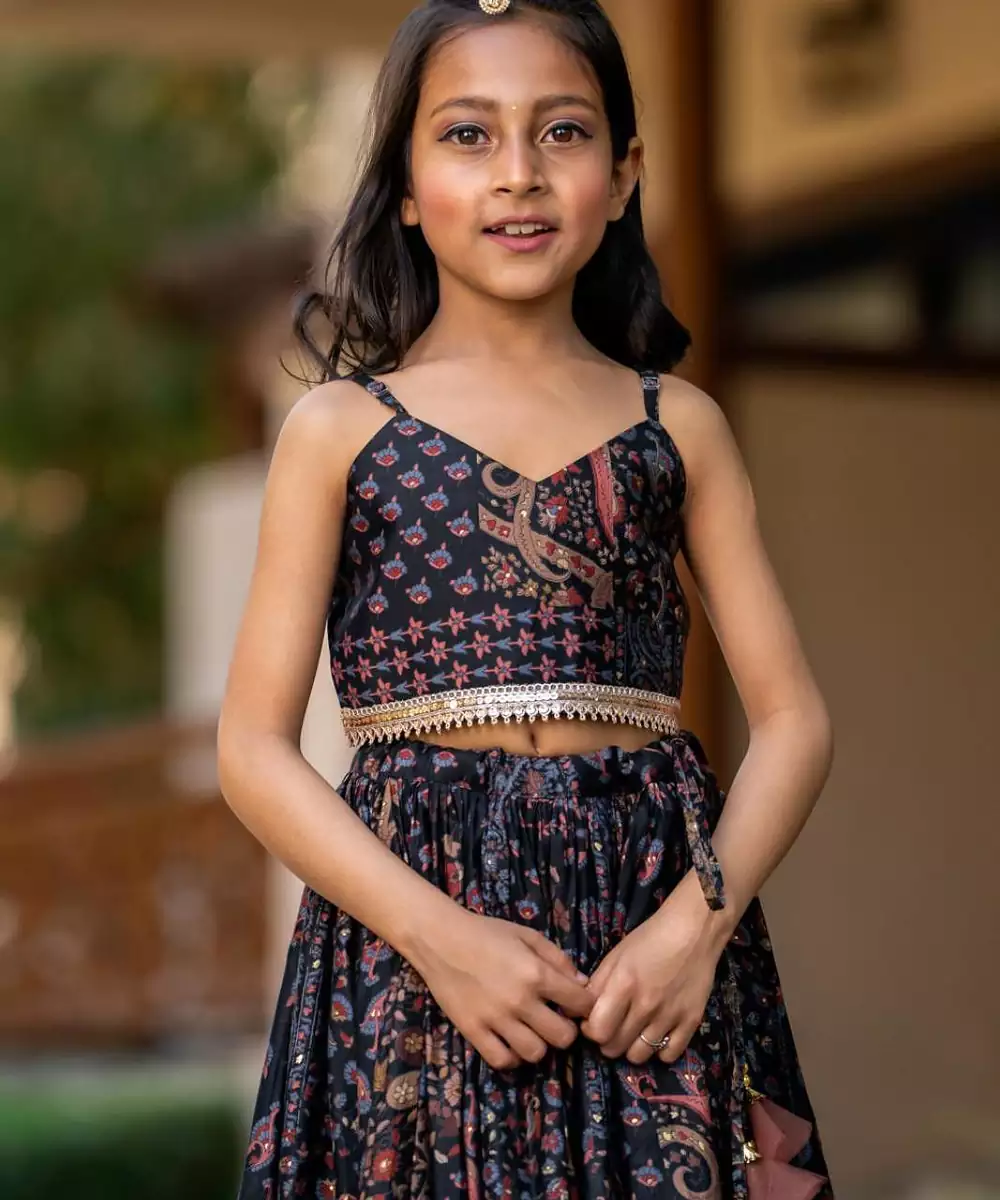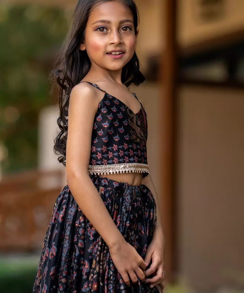 The Black Printed Cotton Lehenga Set Exudes Effortless Charm With Its Breathable Fabric And Stylish Prints. Designed For Comfort And Elegance, The Lehenga Pairs Beautifully With A Matching Blouse And Dupatta. Ideal For Festive Occasions, Casual Celebrations, Or Traditional Gatherings, This Set Blends Simplicity With Timeless Ethnic Appeal.