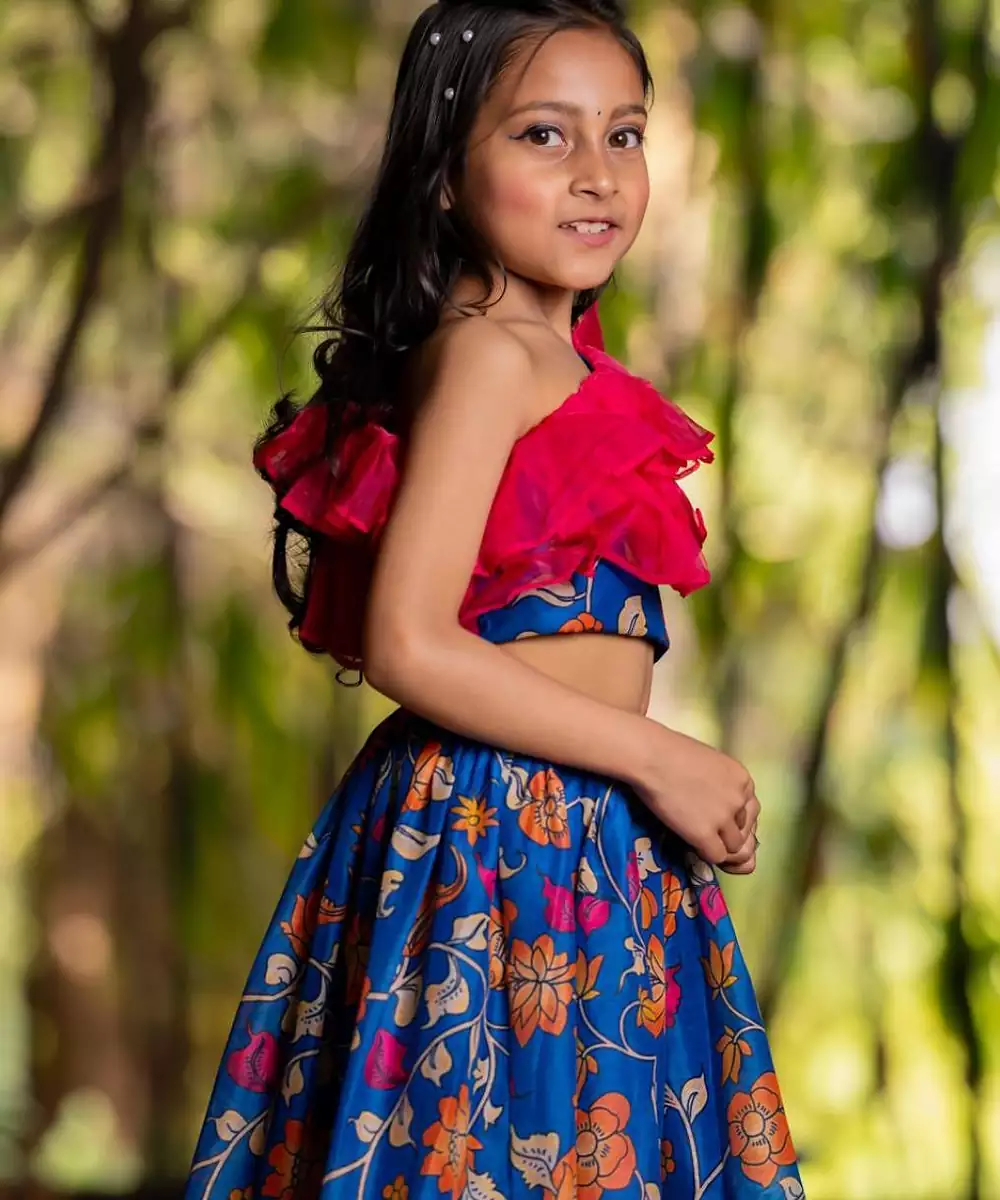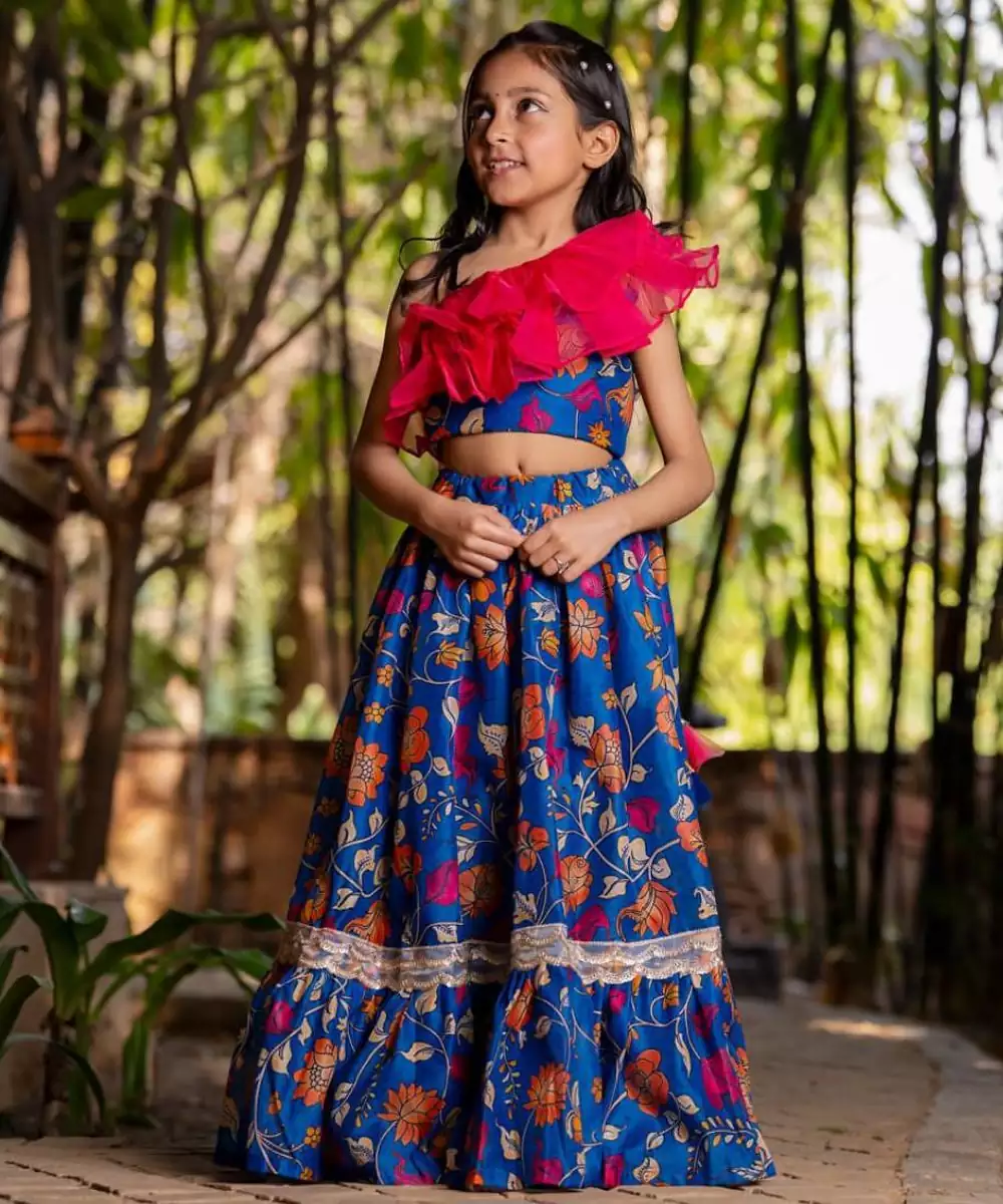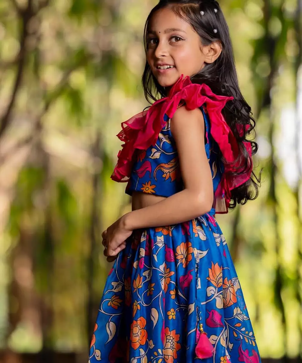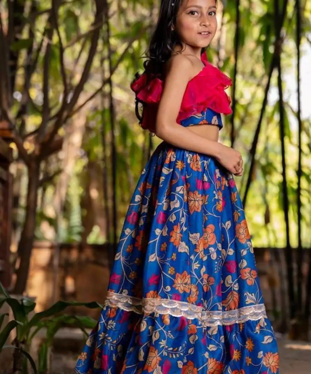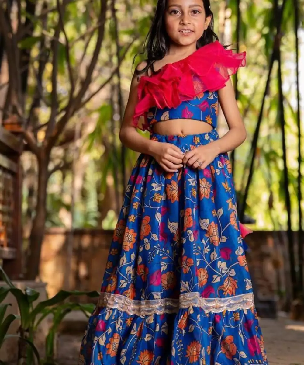 The Blue Printed Chanderi Lehenga Set Is A Graceful Blend Of Tradition And Charm. Crafted From Lightweight Chanderi Fabric, The Lehenga Features Elegant Prints That Enhance Its Festive Appeal. Paired With A Matching Blouse And Dupatta, This Ensemble Is Perfect For Weddings, Festive Gatherings, Or Celebratory Occasions.