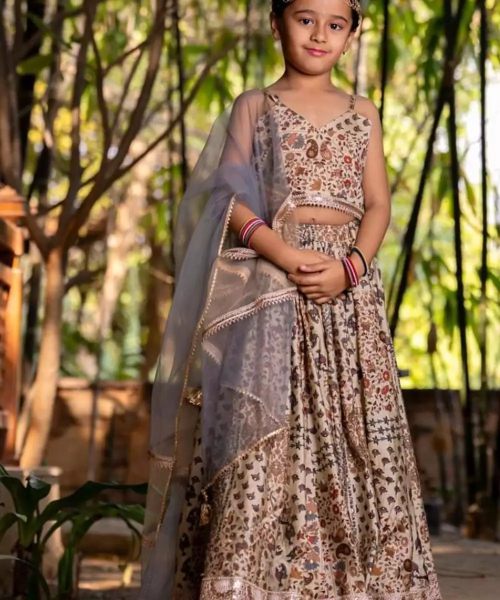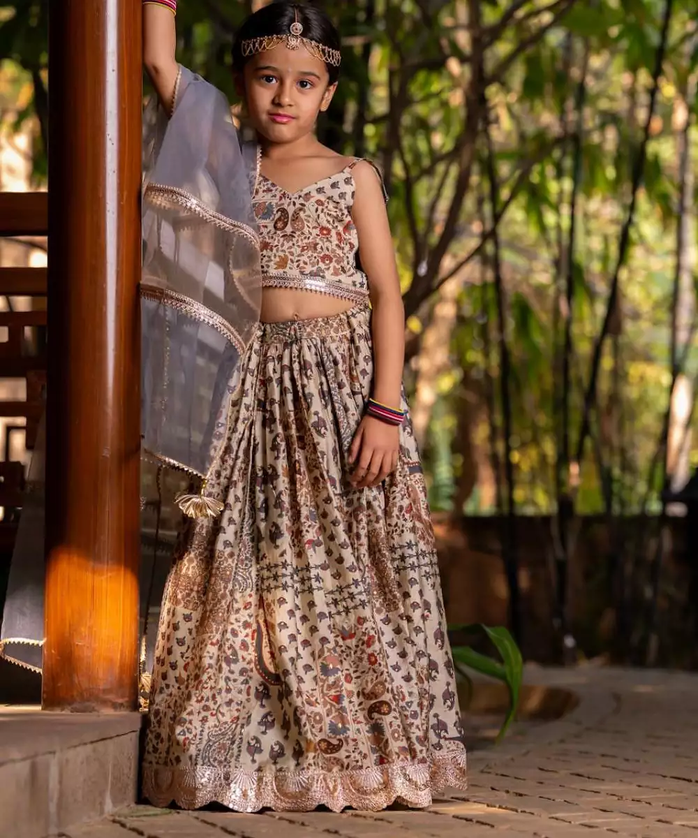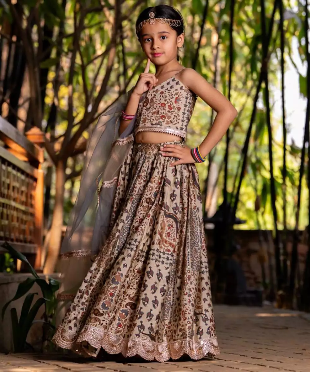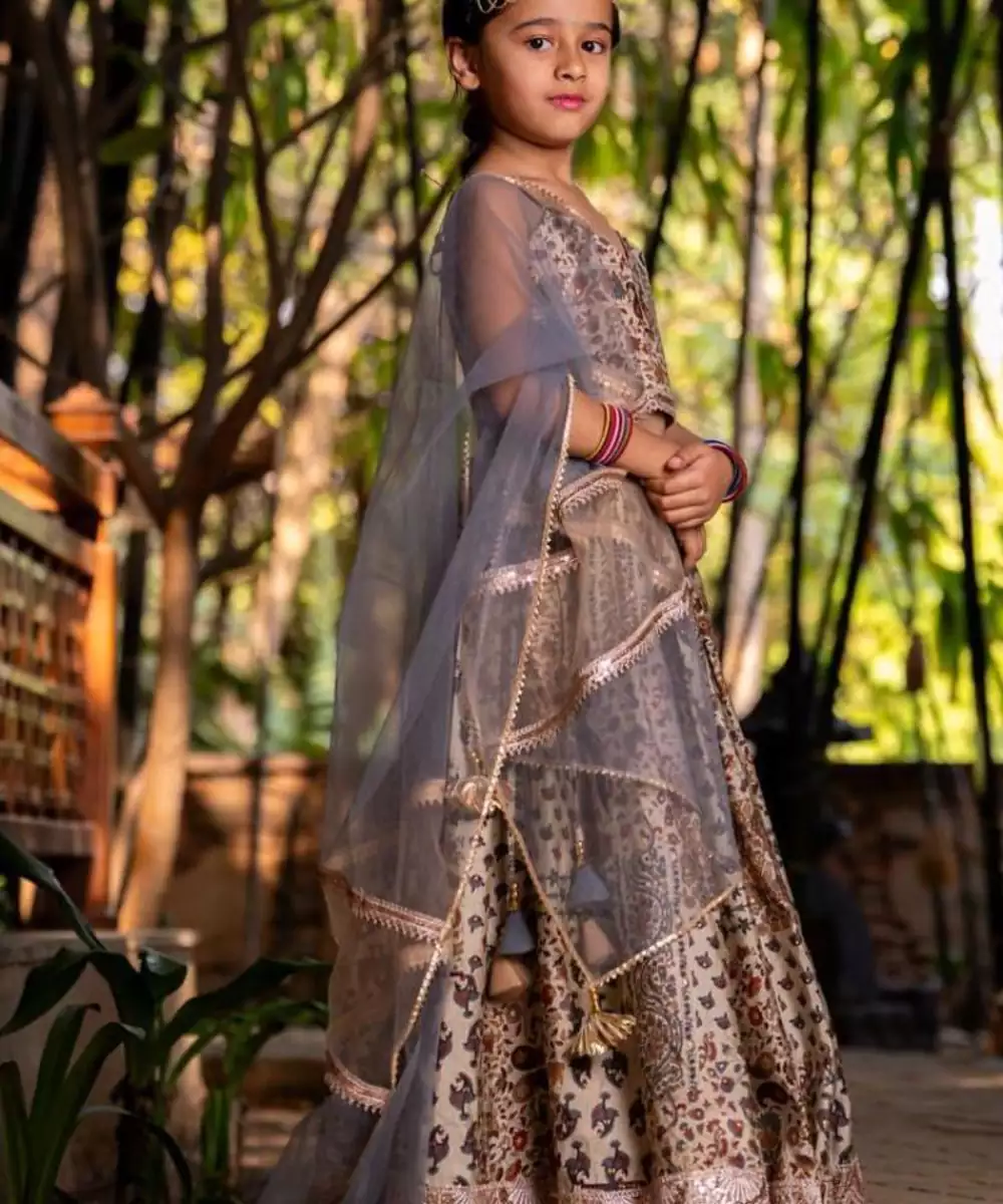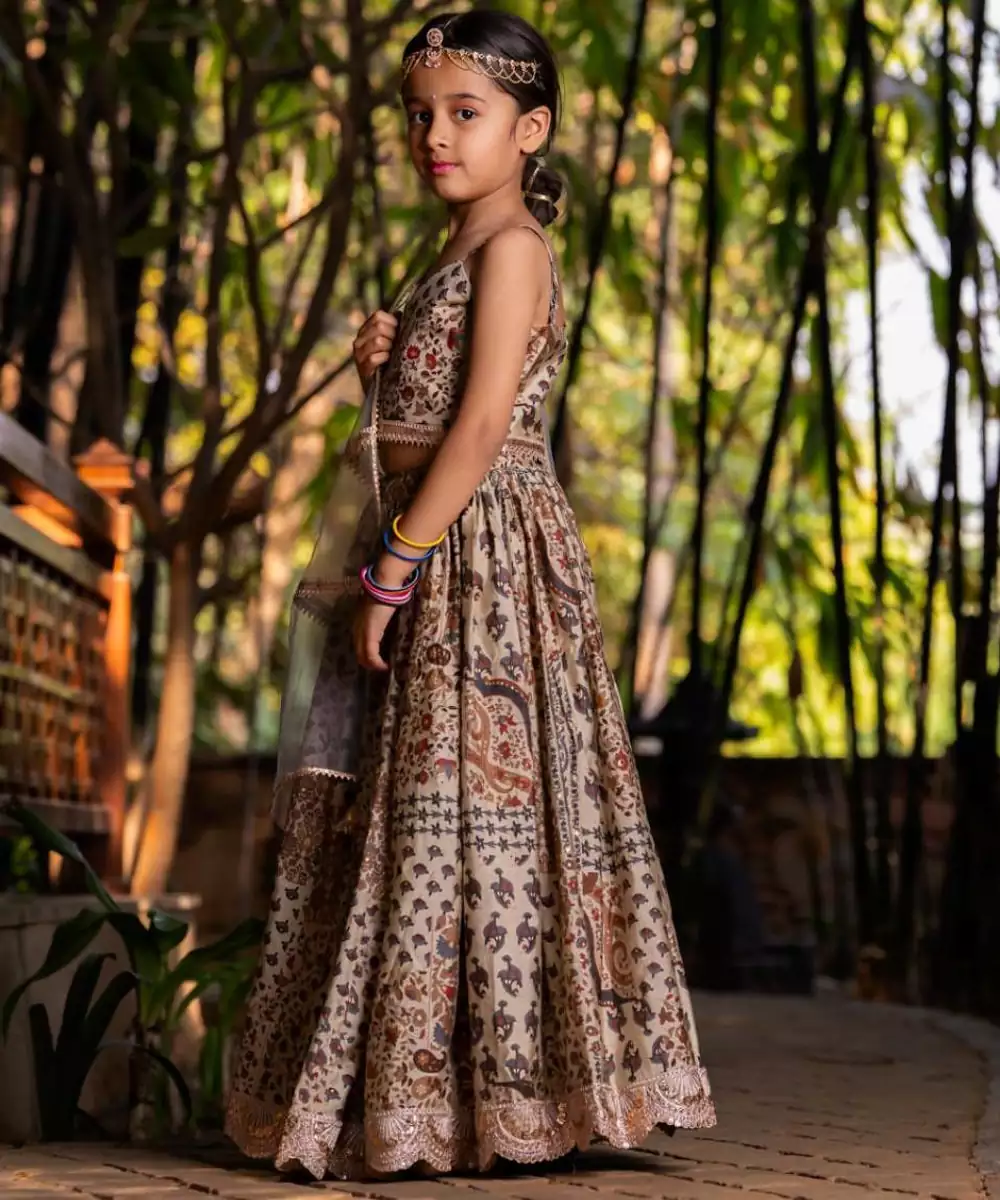 The Brown Printed Chanderi Lehenga Set Is A Graceful Blend Of Tradition And Charm. Crafted From Lightweight Chanderi Fabric, The Lehenga Features Elegant Prints That Enhance Its Festive Appeal. Paired With A Matching Blouse And Dupatta, This Ensemble Is Perfect For Weddings, Festive Gatherings, Or Celebratory Occasions.