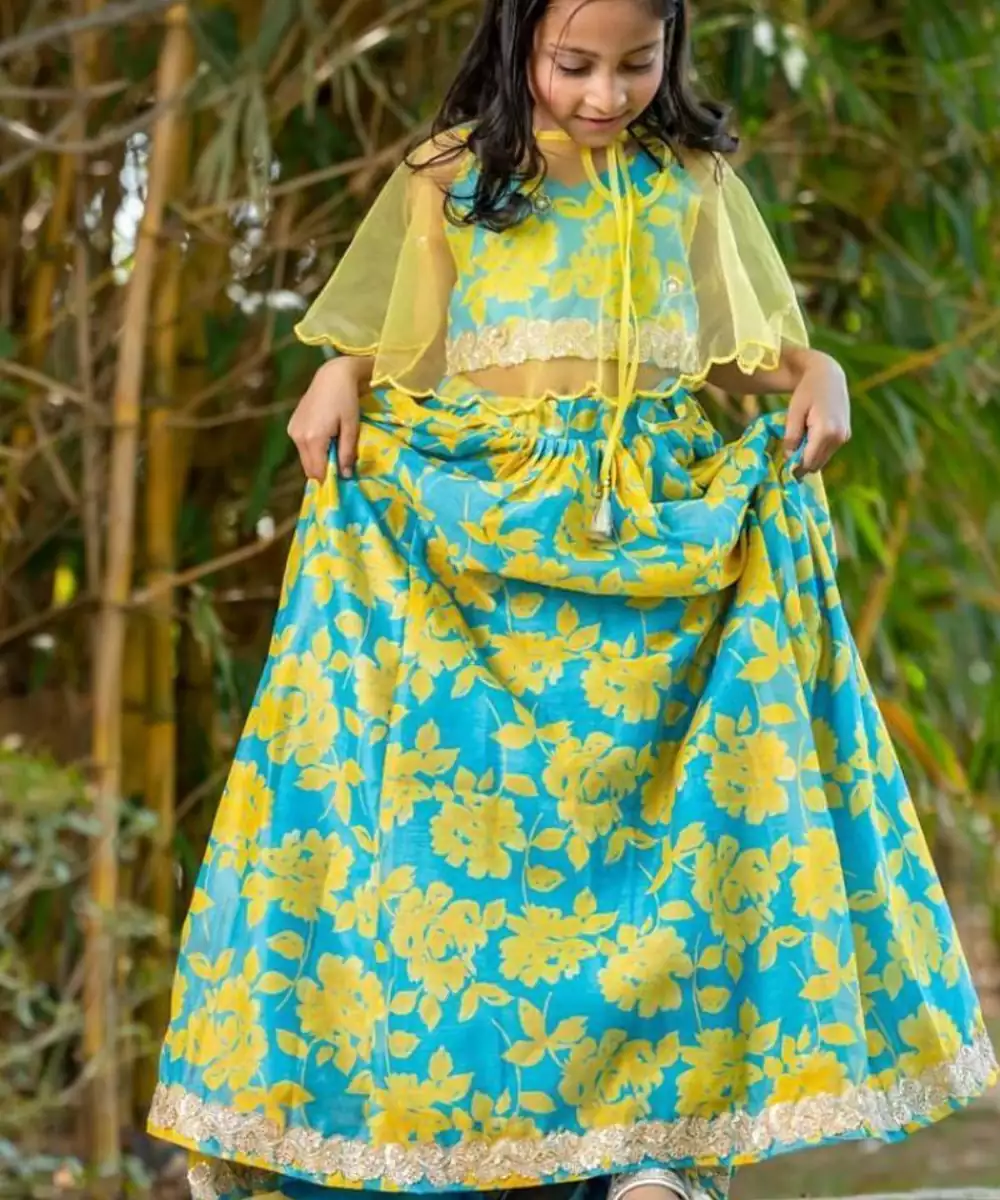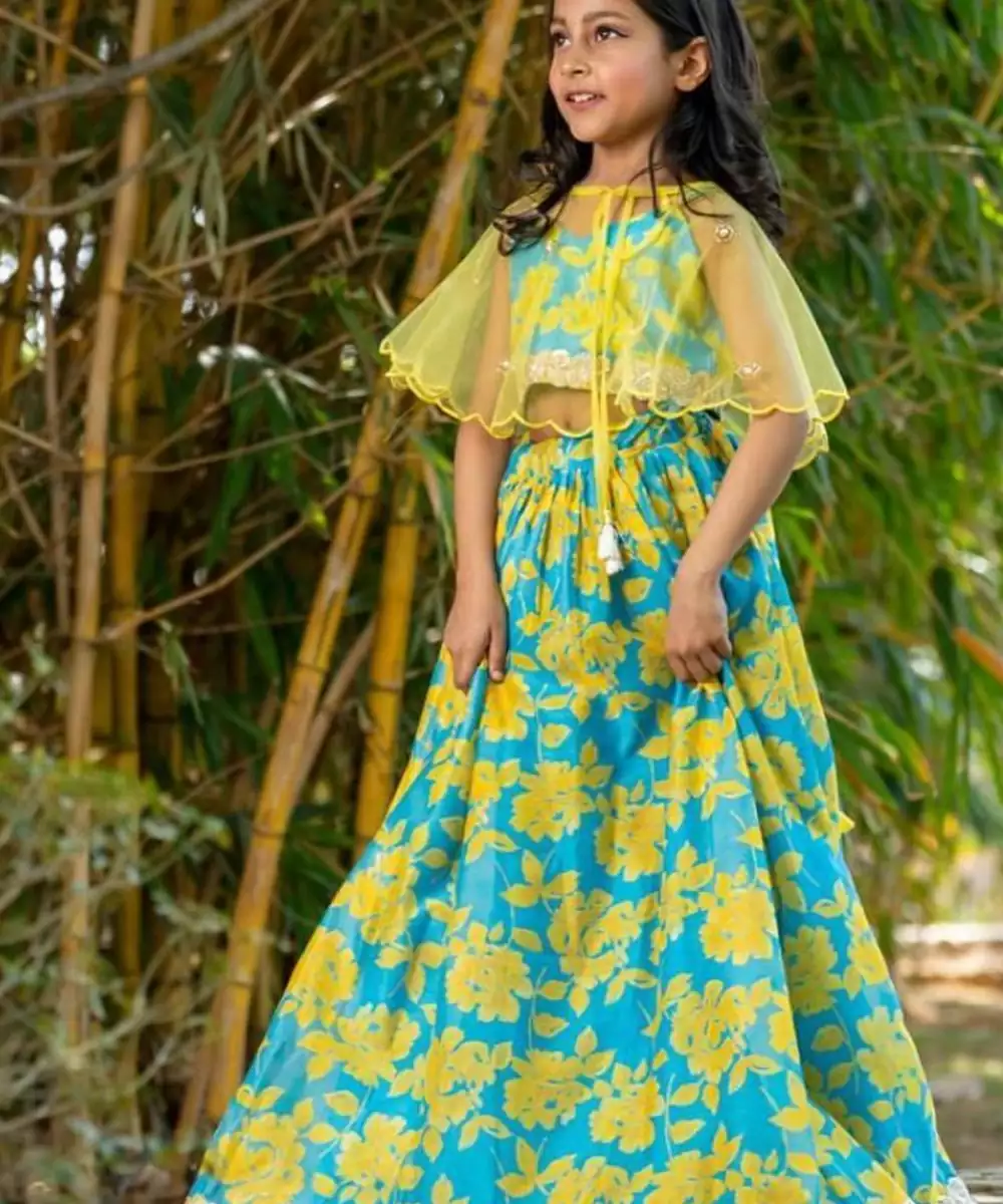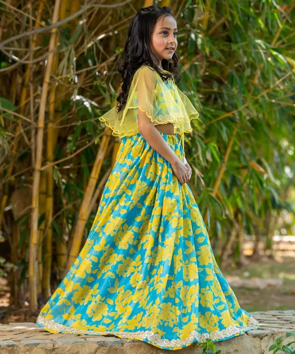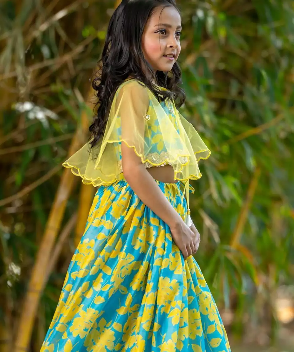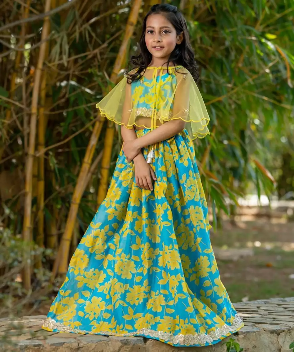 Components: 1 Lehenga / 1 Blouse / 1 Cape / 1 Potli Bag