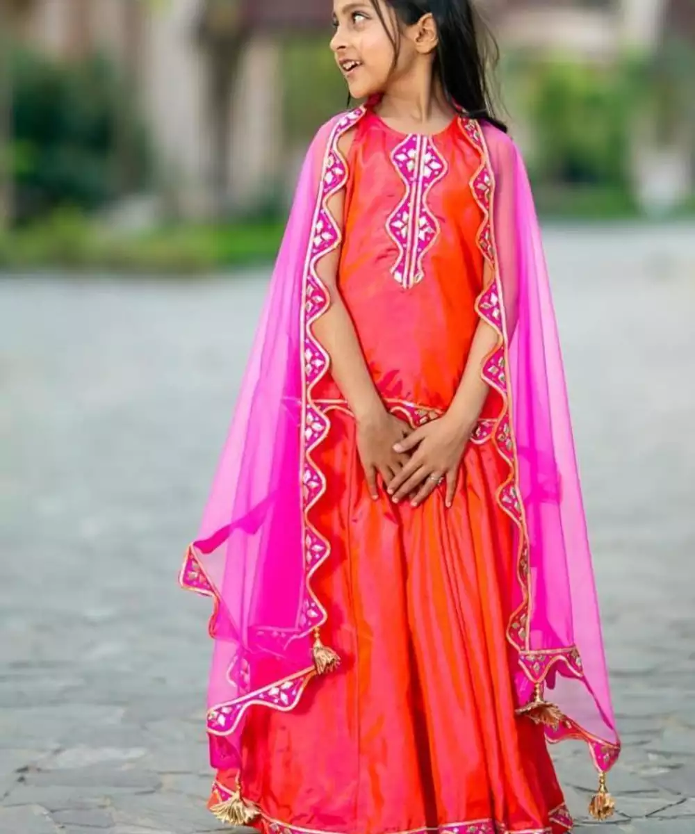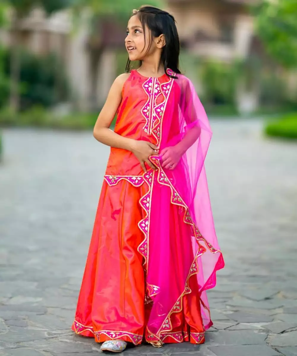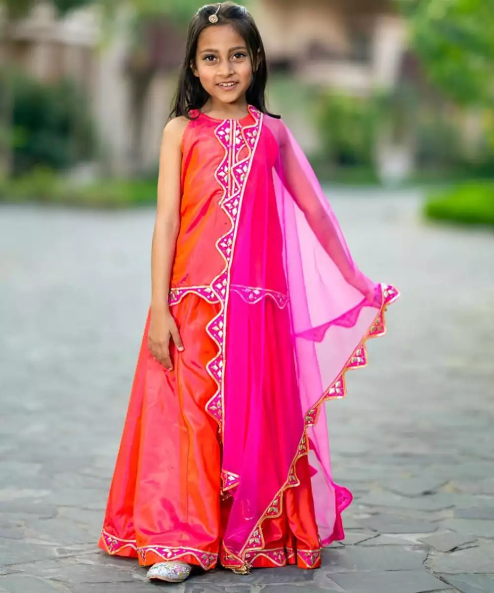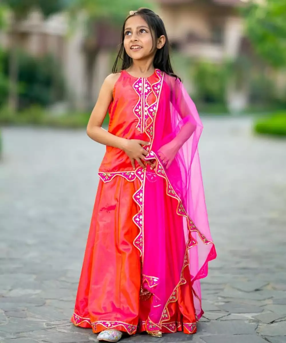 The Pink Printed Chanderi Lehenga Set Is A Graceful Blend Of Tradition And Charm. Crafted From Lightweight Chanderi Fabric, The Lehenga Features Elegant Prints That Enhance Its Festive Appeal. Paired With A Matching Blouse And Dupatta, This Ensemble Is Perfect For Weddings, Festive Gatherings, Or Celebratory Occasions.