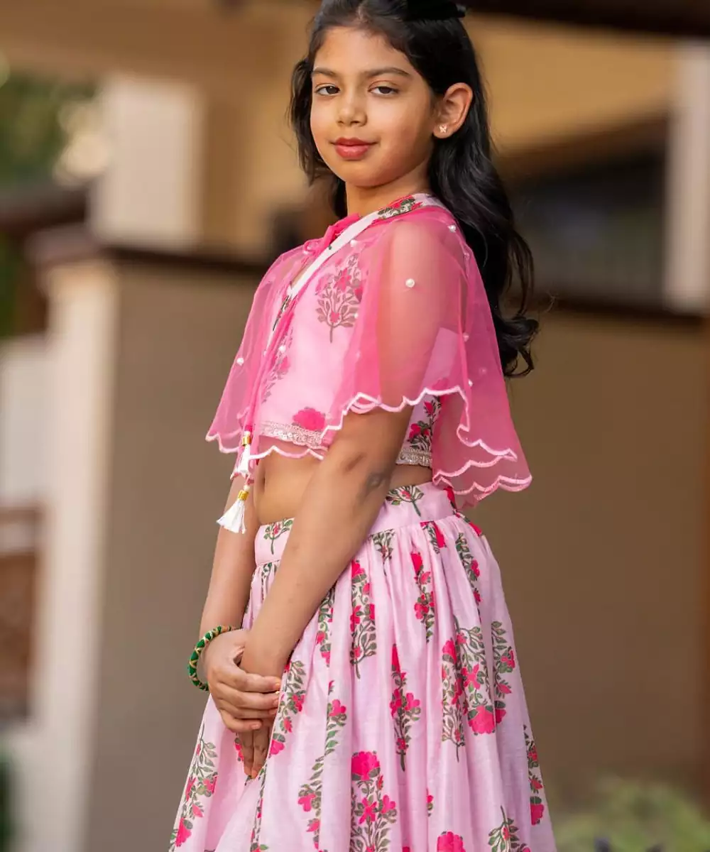 Components: 1 Lehenga / 1 Blouse / 1 Cape / 1 Potli Bag