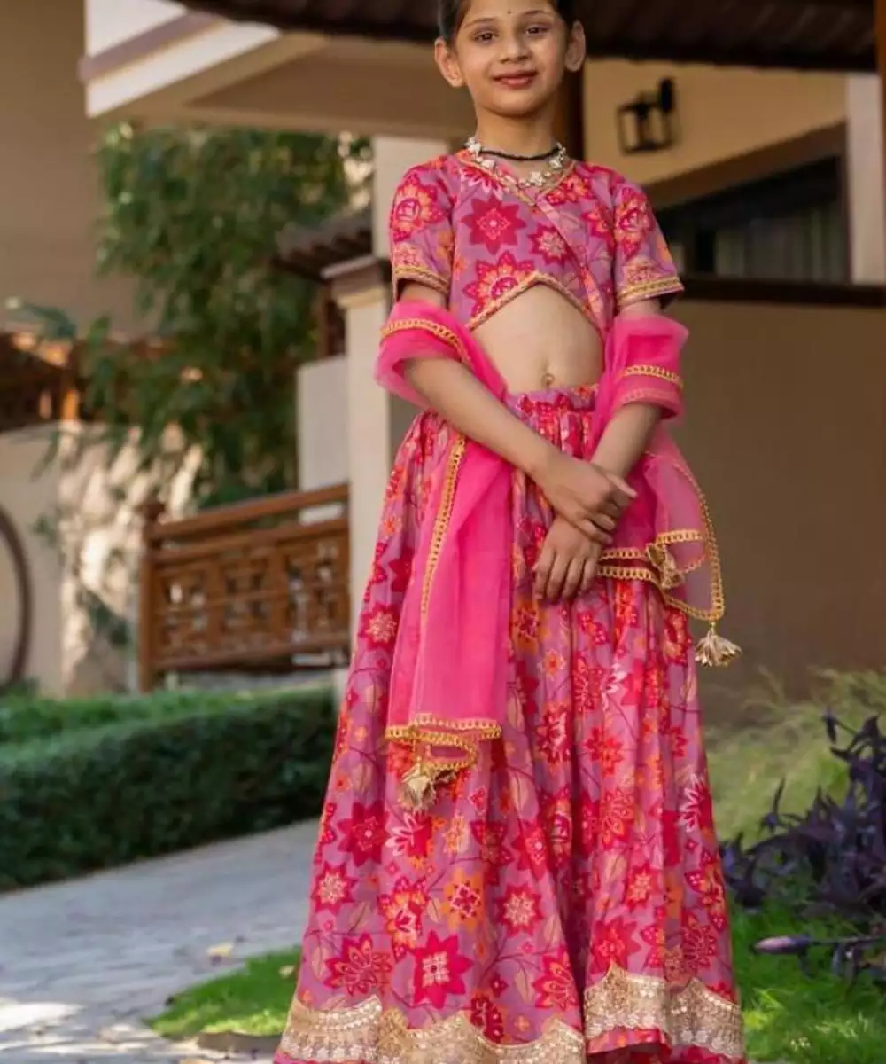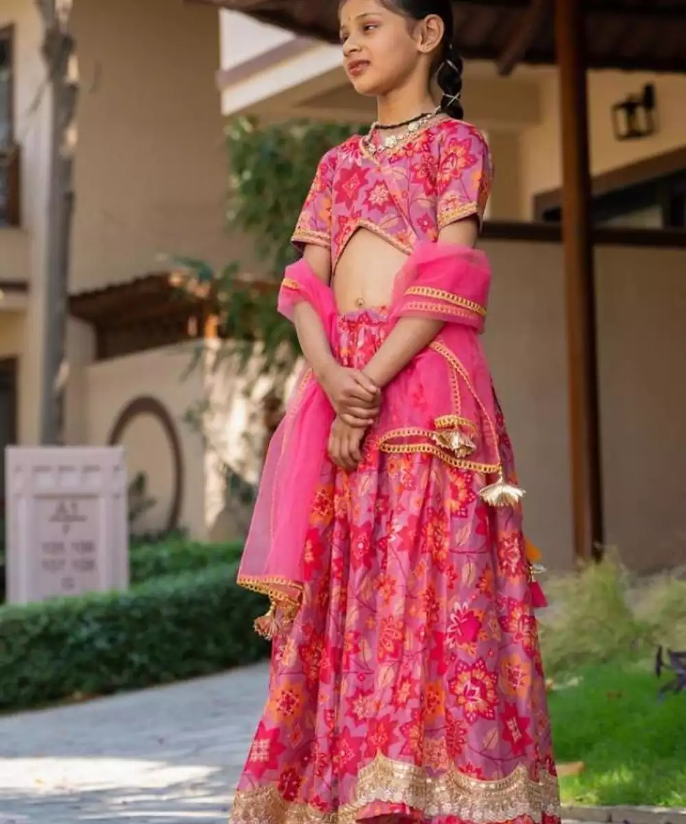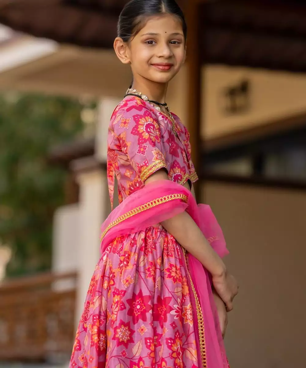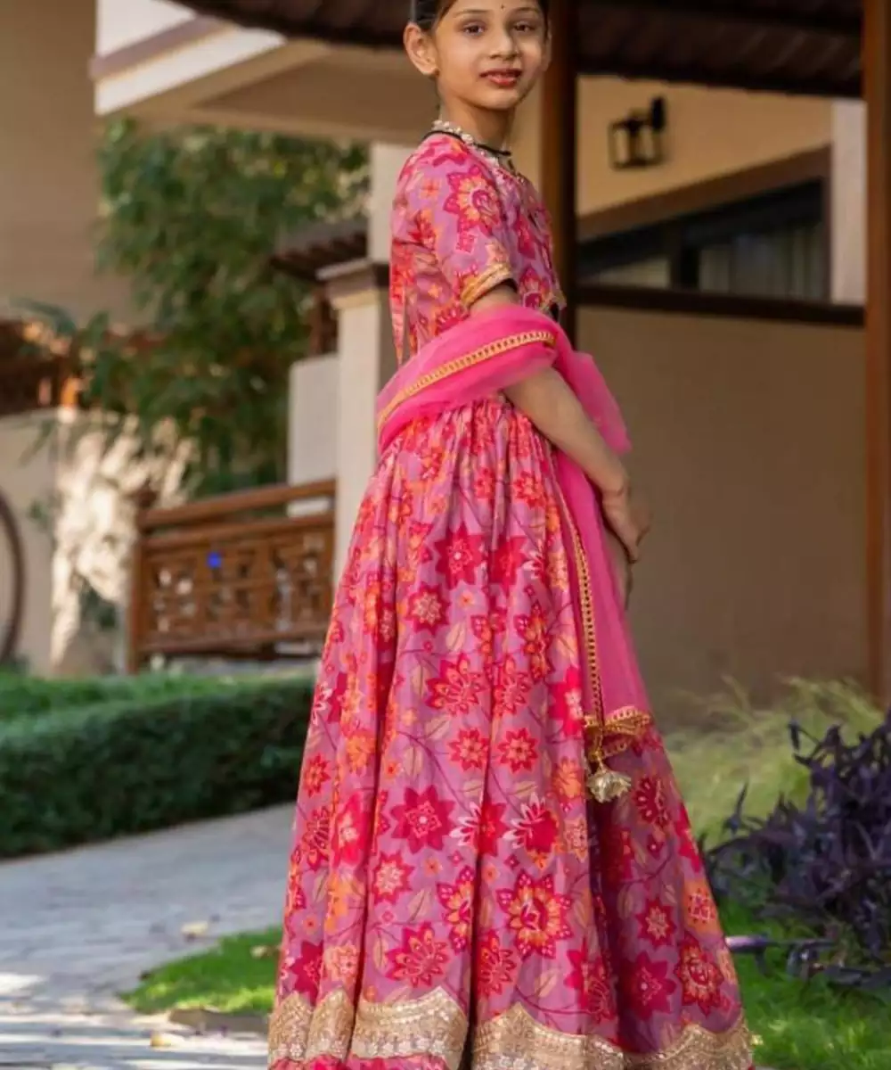 The Pink Printed Cotton Lehenga Set Exudes Effortless Charm With Its Breathable Fabric And Stylish Prints. Designed For Comfort And Elegance, The Lehenga Pairs Beautifully With A Matching Blouse And Dupatta. Ideal For Festive Occasions, Casual Celebrations, Or Traditional Gatherings, This Set Blends Simplicity With Timeless Ethnic Appeal.