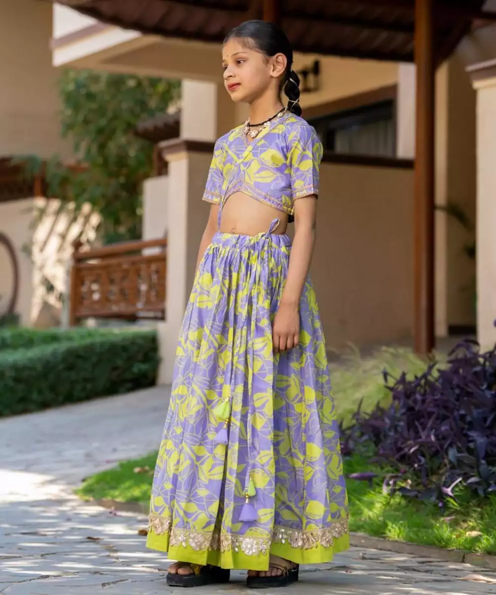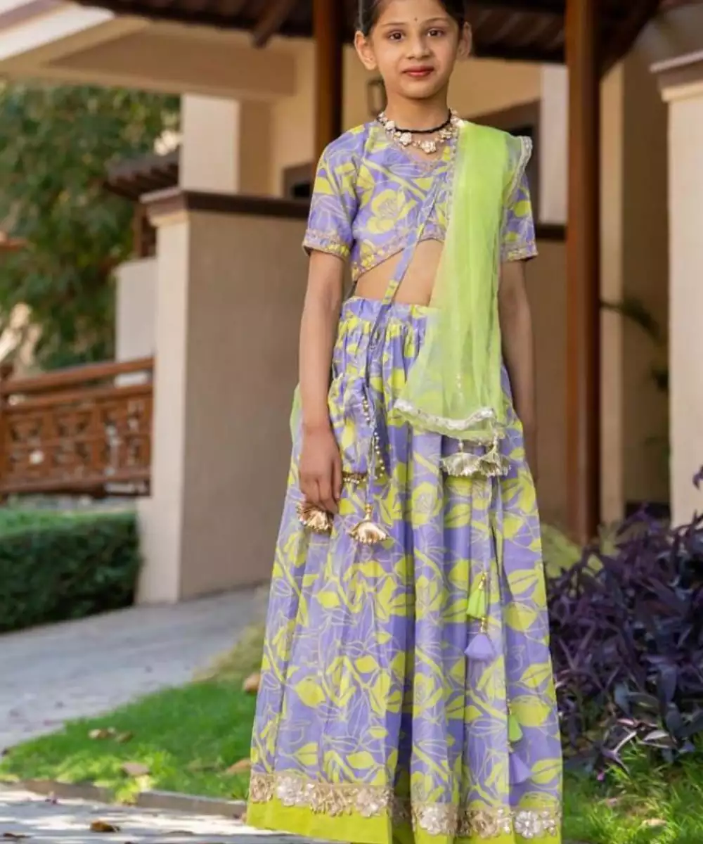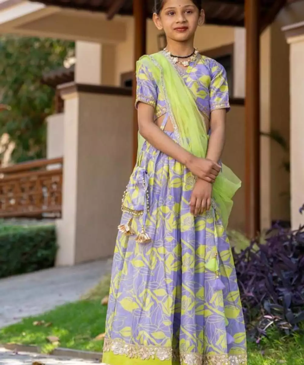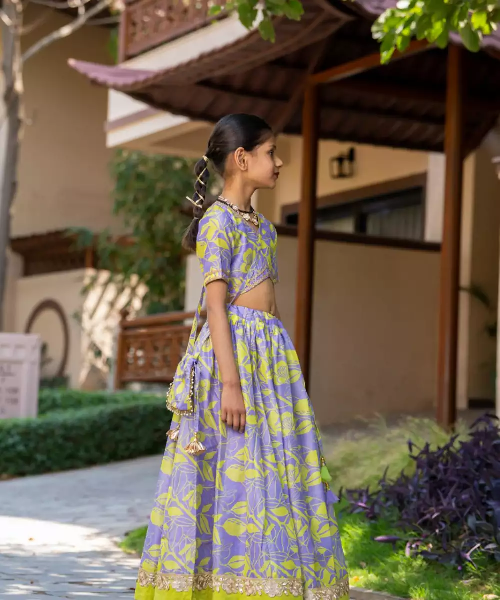 The Purple Printed Chanderi Lehenga Set Is A Graceful Blend Of Tradition And Charm. Crafted From Lightweight Chanderi Fabric, The Lehenga Features Elegant Prints That Enhance Its Festive Appeal. Paired With A Matching Blouse And Dupatta, This Ensemble Is Perfect For Weddings, Festive Gatherings, Or Celebratory Occasions.