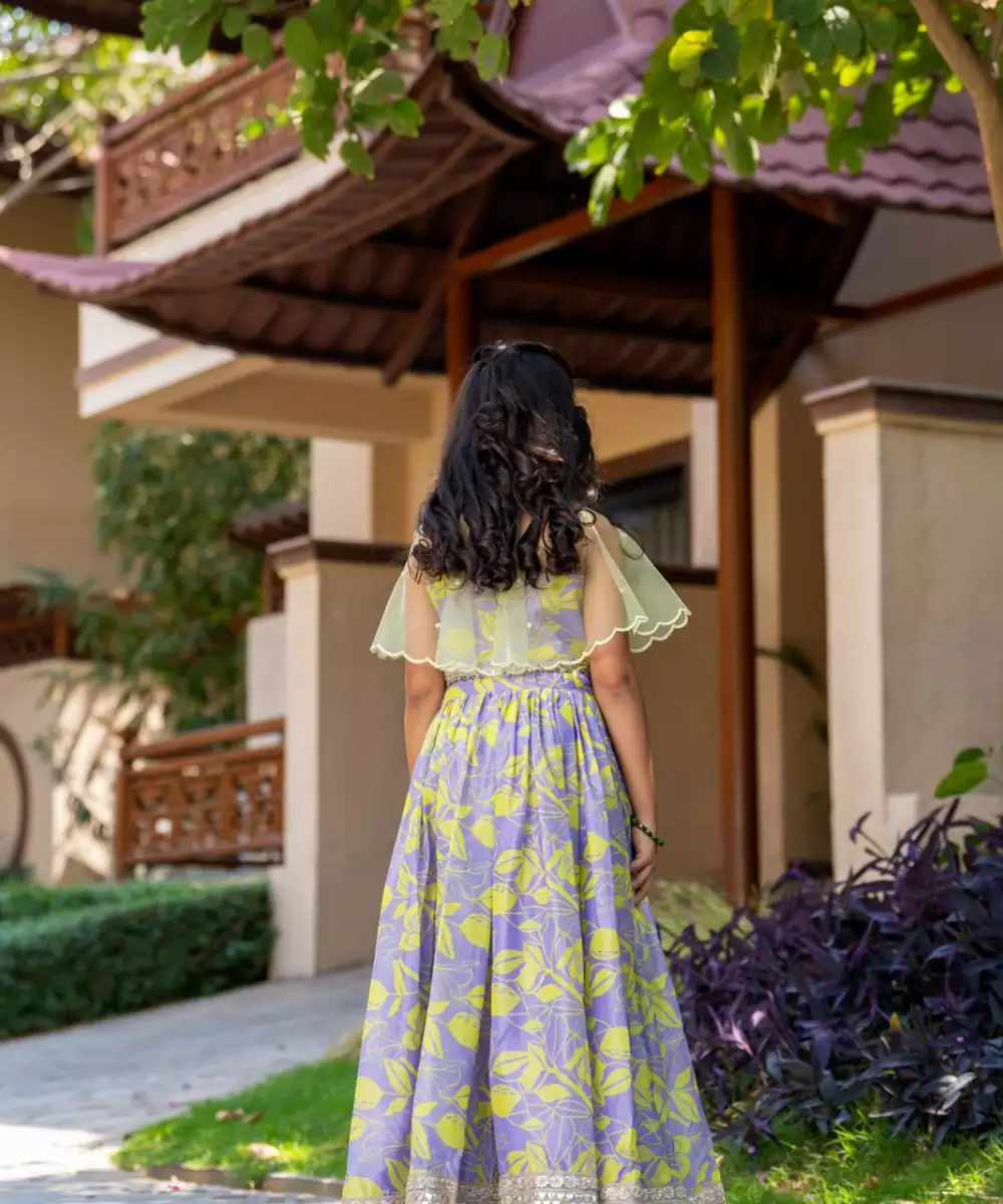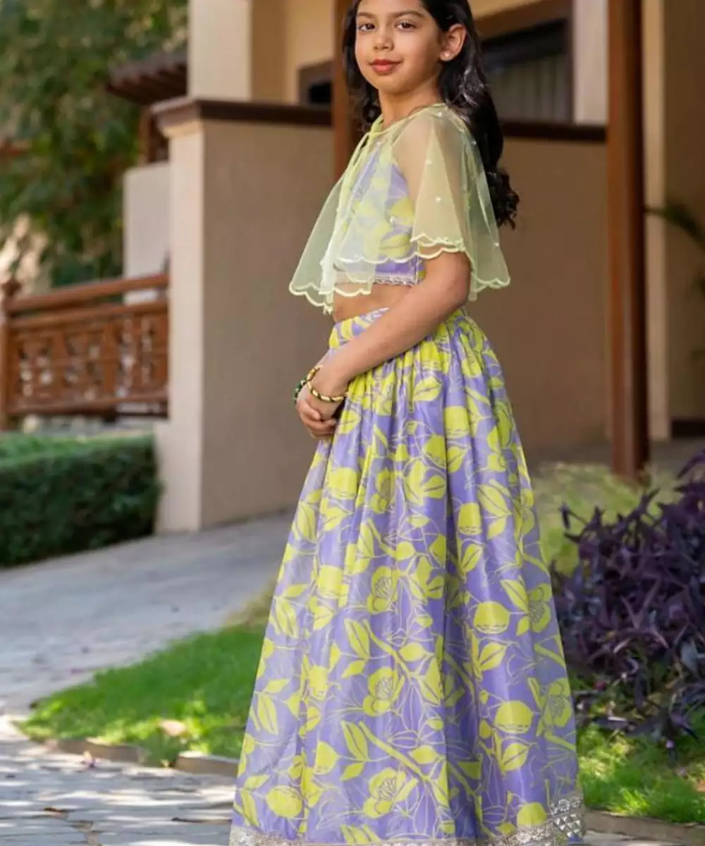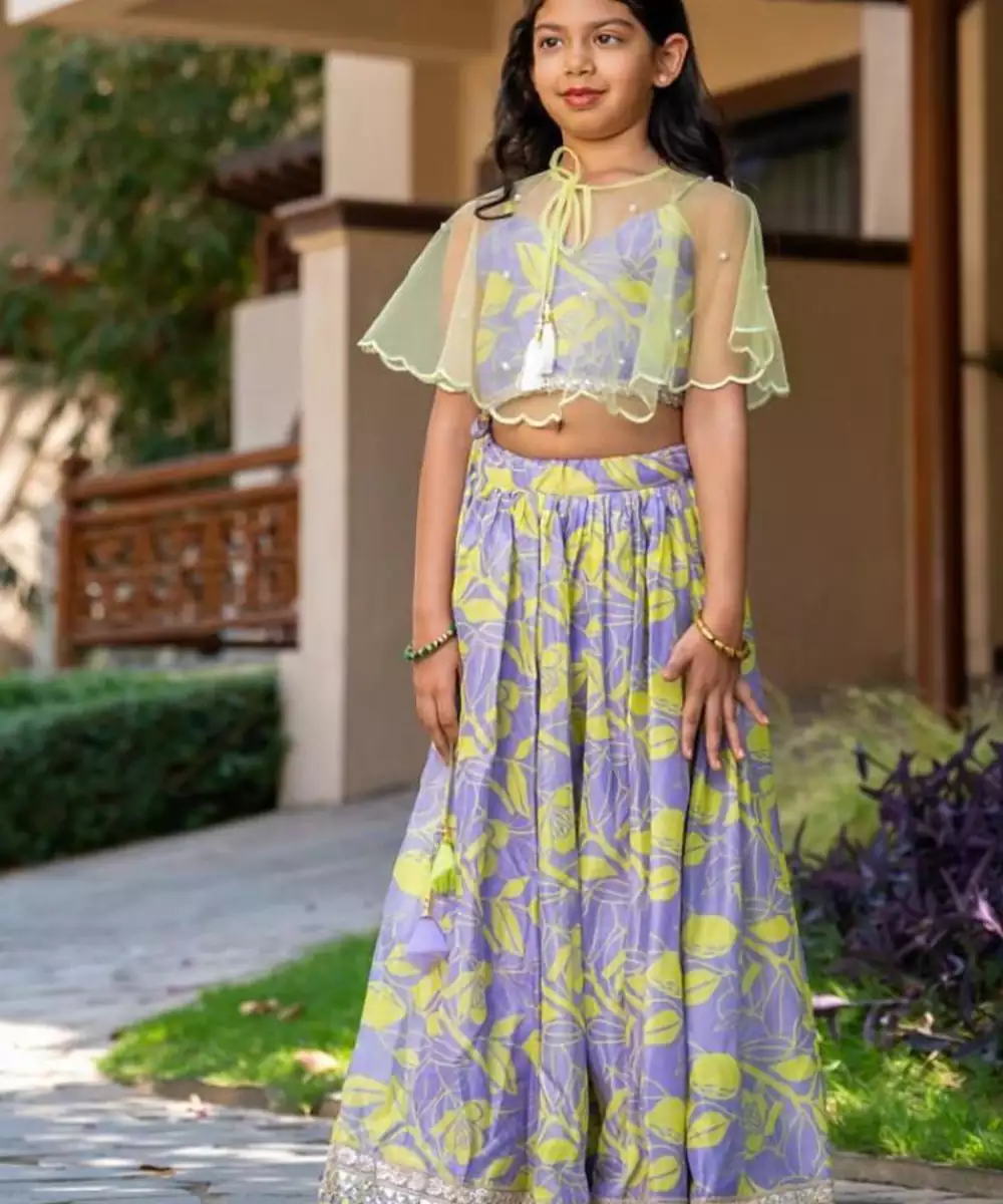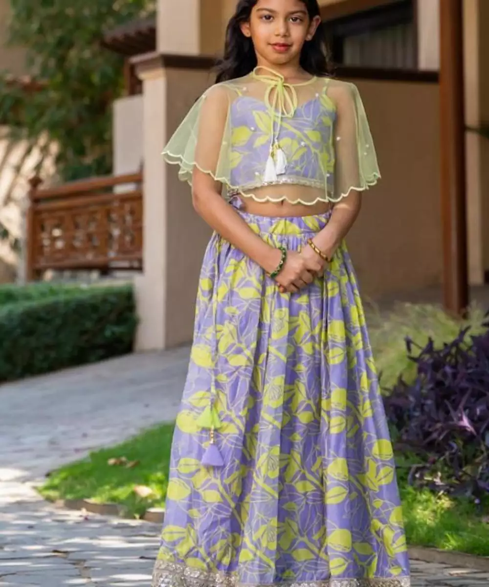 Components: 1 Lehenga / 1 Blouse / 1 Cape / 1 Potli Bag