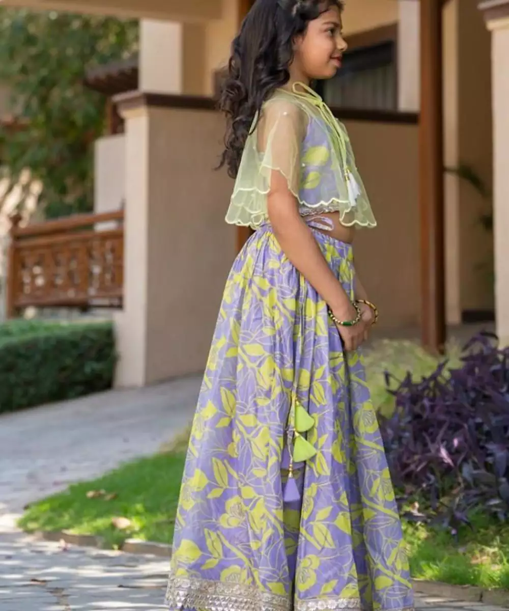 The Purple Printed Chanderi Lehenga Set Is A Graceful Blend Of Tradition And Charm. Crafted From Lightweight Chanderi Fabric, The Lehenga Features Elegant Prints That Enhance Its Festive Appeal. Paired With A Matching Blouse And Dupatta, This Ensemble Is Perfect For Weddings, Festive Gatherings, Or Celebratory Occasions.