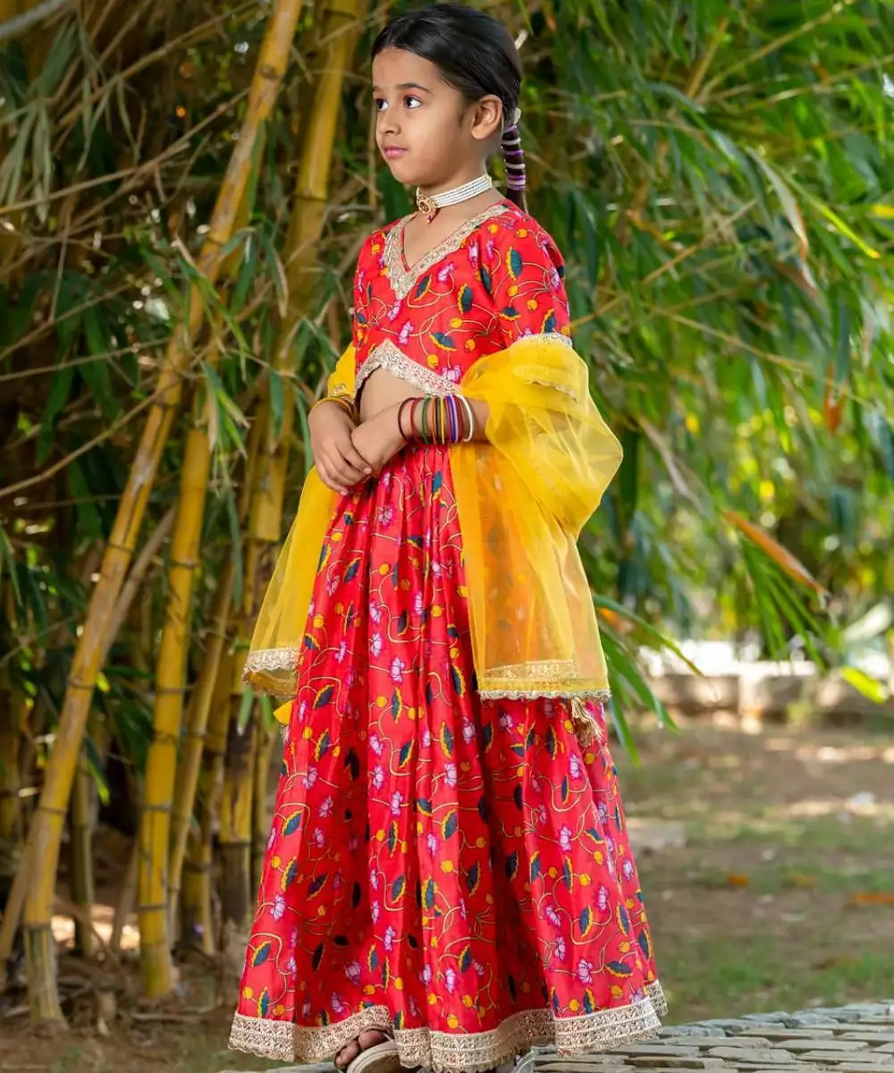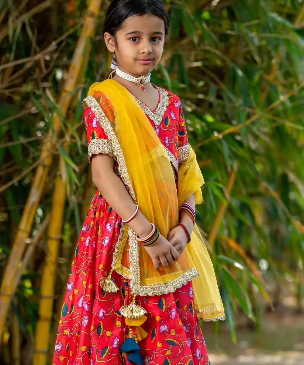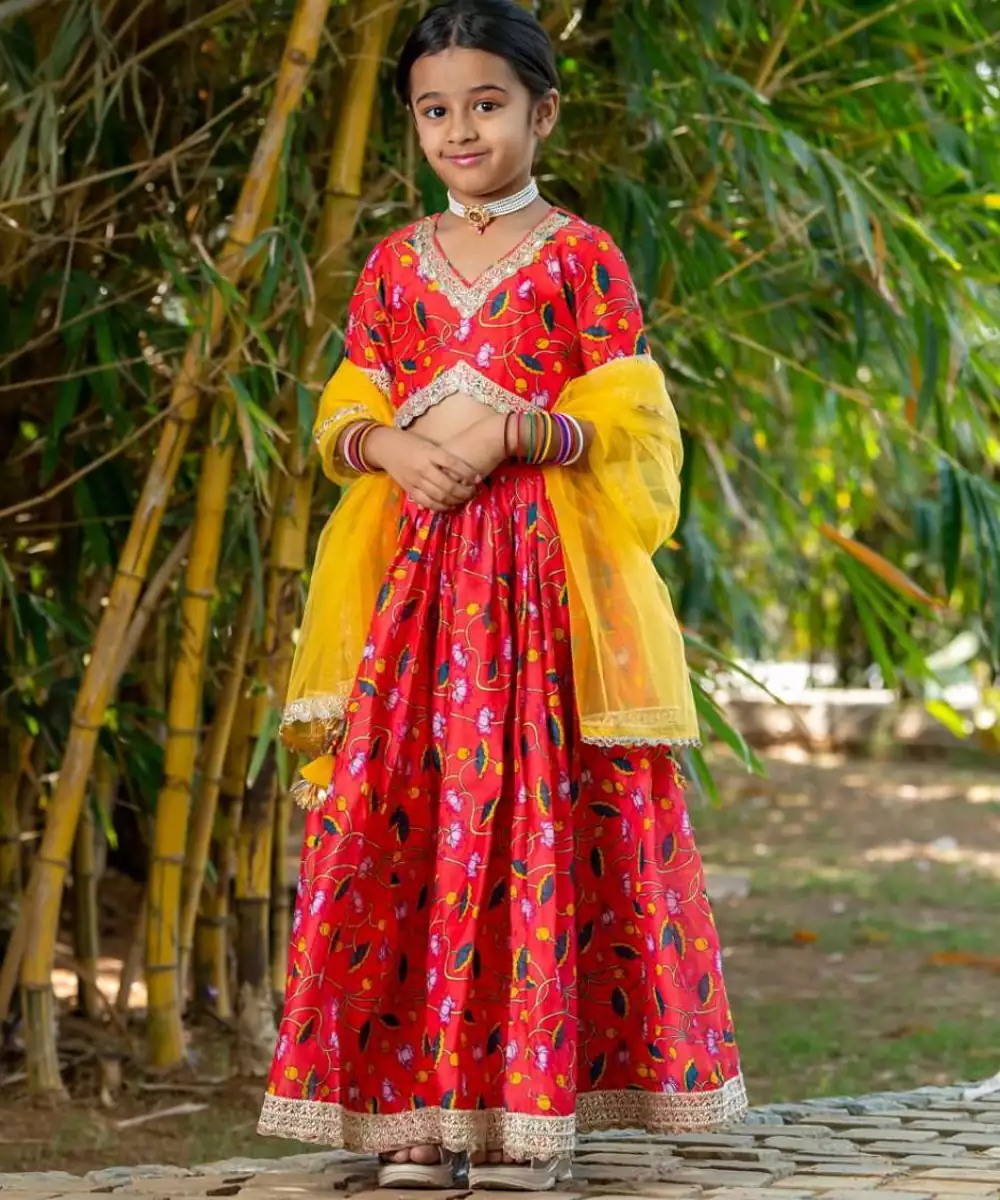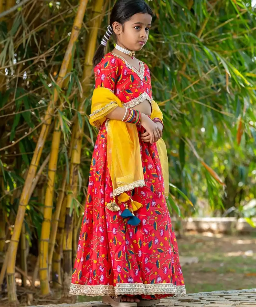 The Red Printed Chanderi Lehenga Set Is A Graceful Blend Of Tradition And Charm. Crafted From Lightweight Chanderi Fabric, The Lehenga Features Elegant Prints That Enhance Its Festive Appeal. Paired With A Matching Blouse And Dupatta, This Ensemble Is Perfect For Weddings, Festive Gatherings, Or Celebratory Occasions.