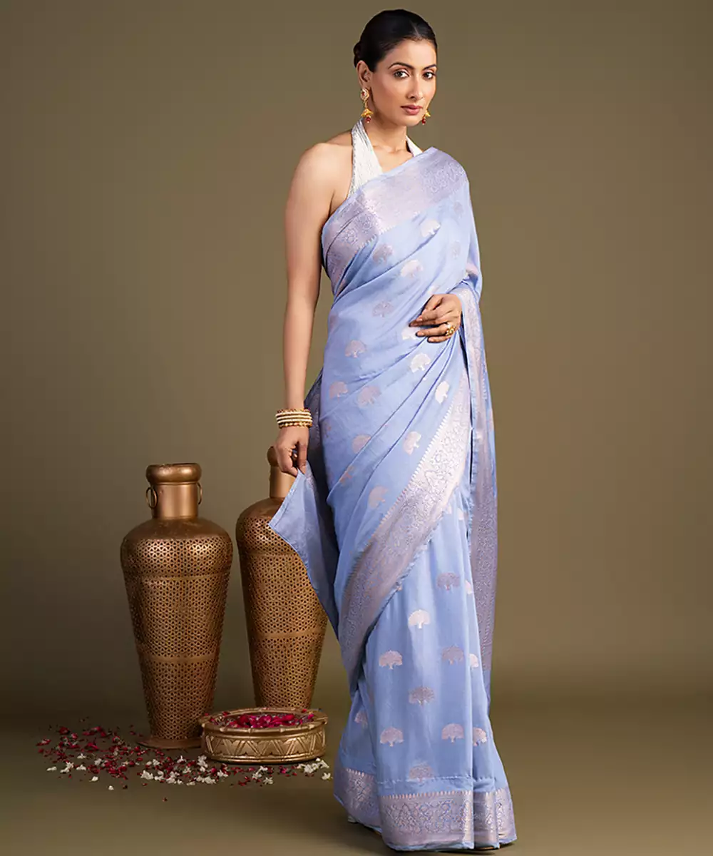 Blue Handloom Banarasi Silk Saree