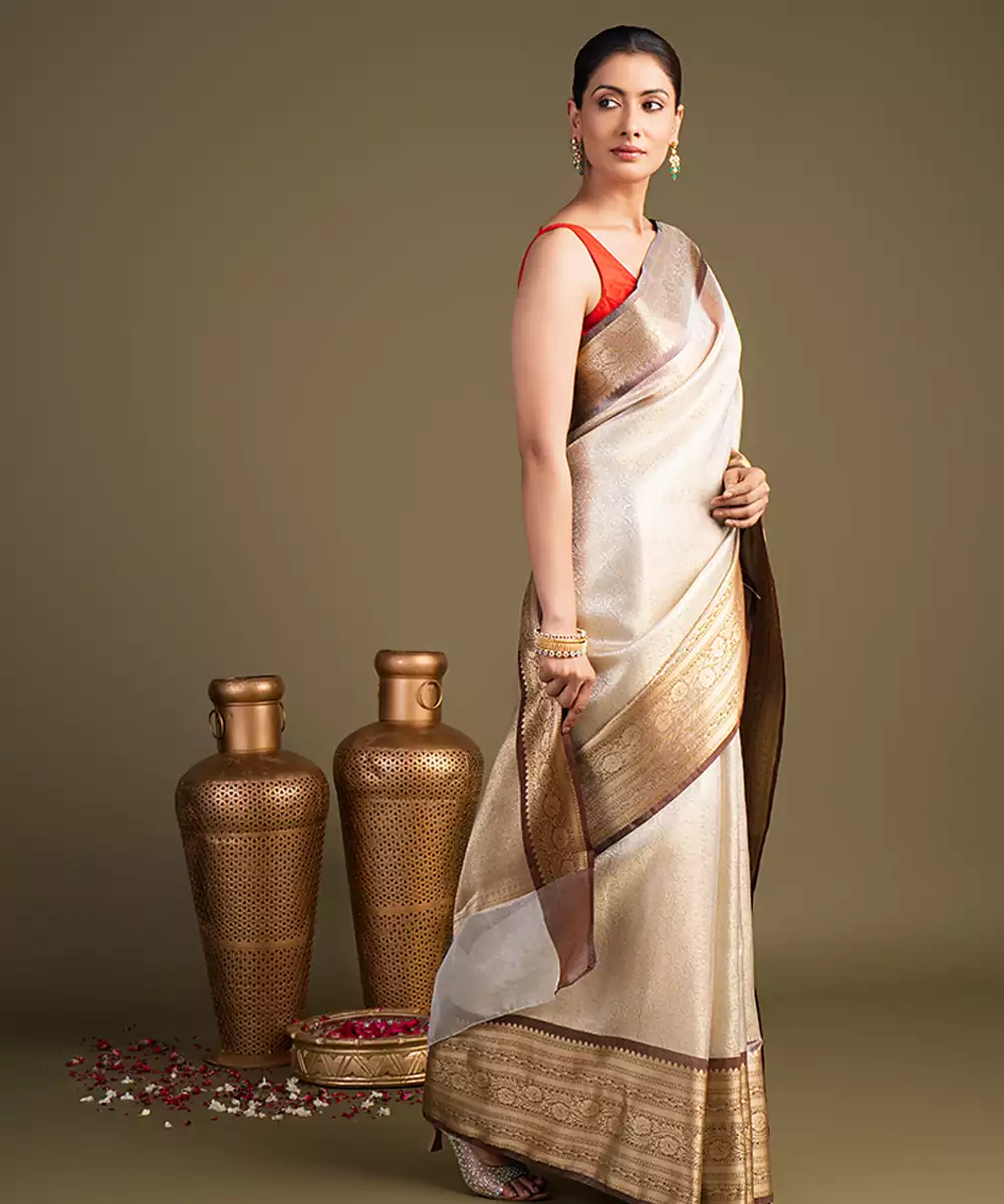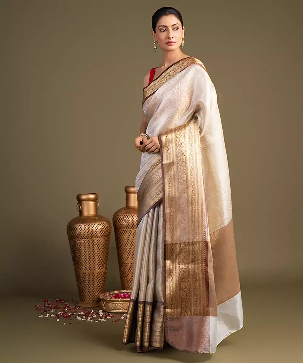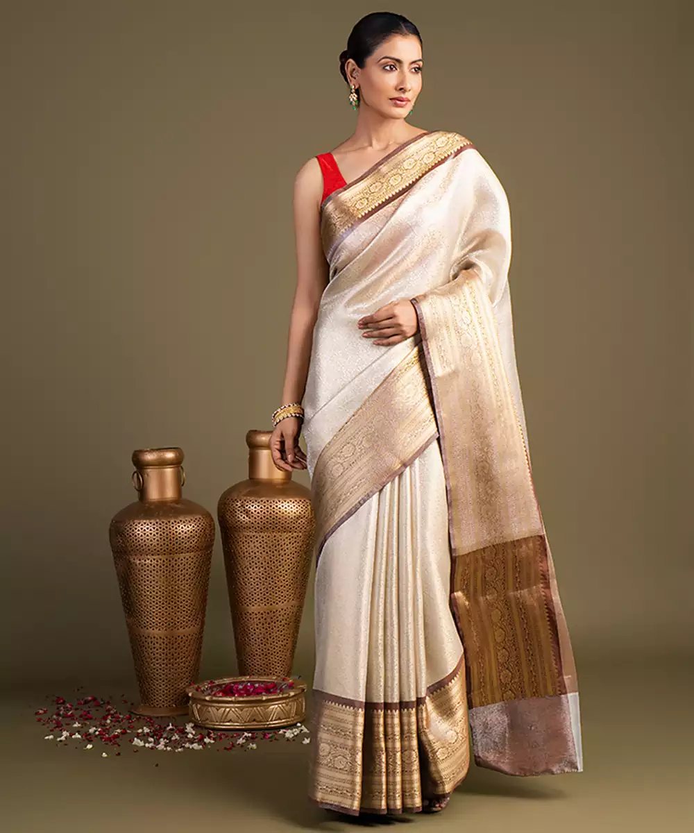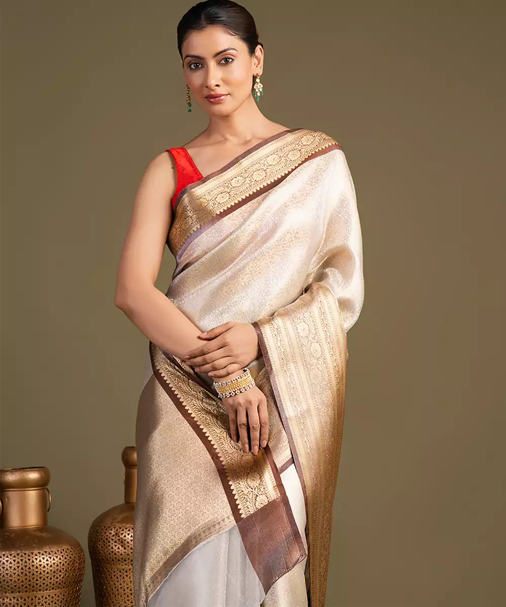 Ivory Handloom Banarasi Saree