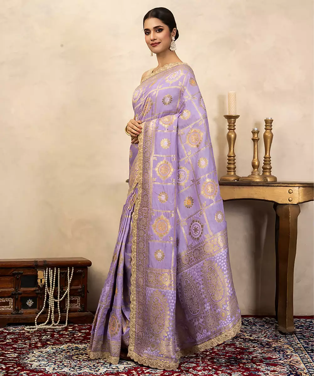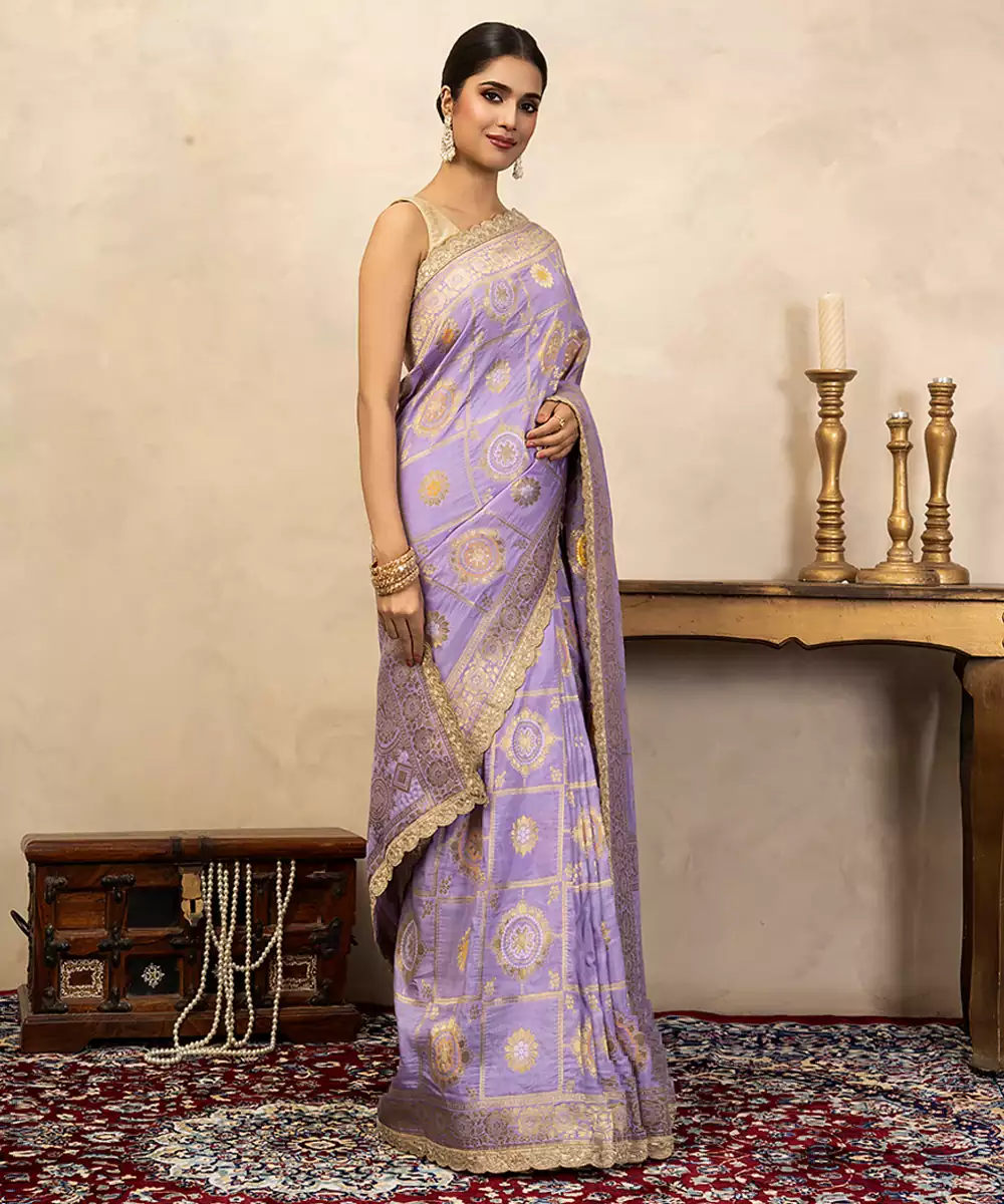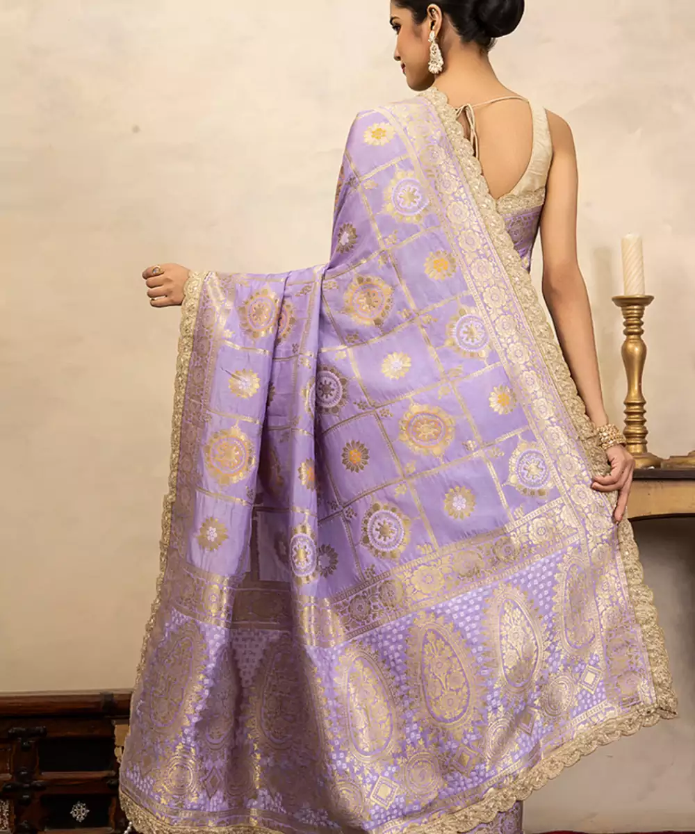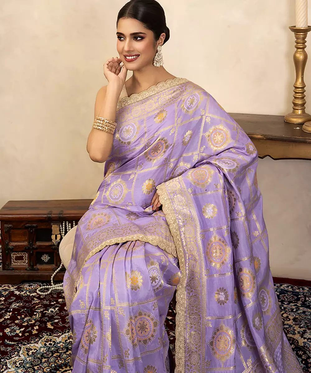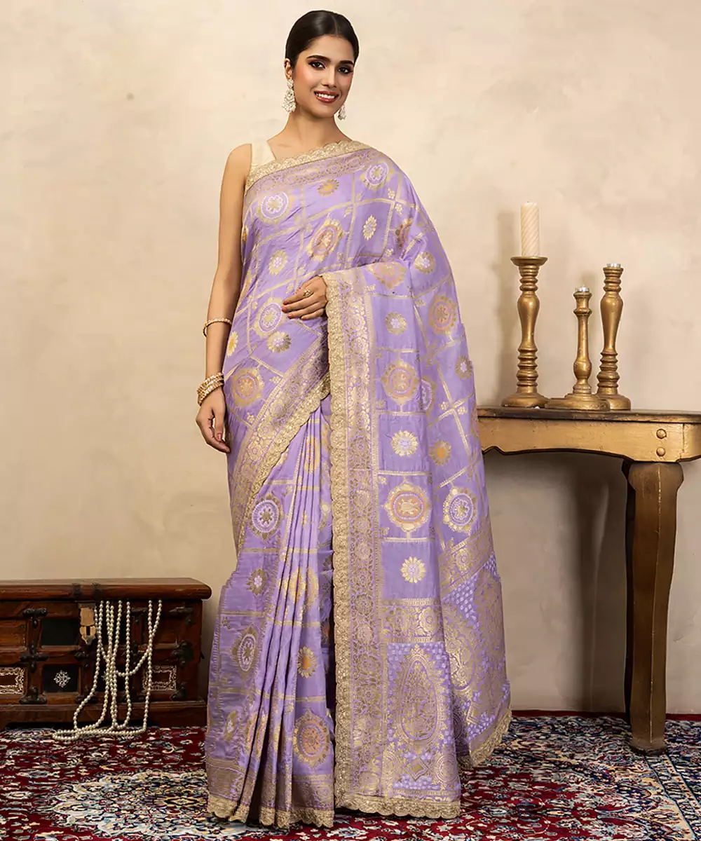 This Light Purple Pure Silk Saree Showcases A Soft Hue And Smooth Texture, Crafted Using Traditional Handloom Techniques. Its Elegant Drape Makes It Perfect For Festive Occasions. Pair It With Subtle Accessories To Create A Refined And Graceful Ensemble With Timeless Appeal.