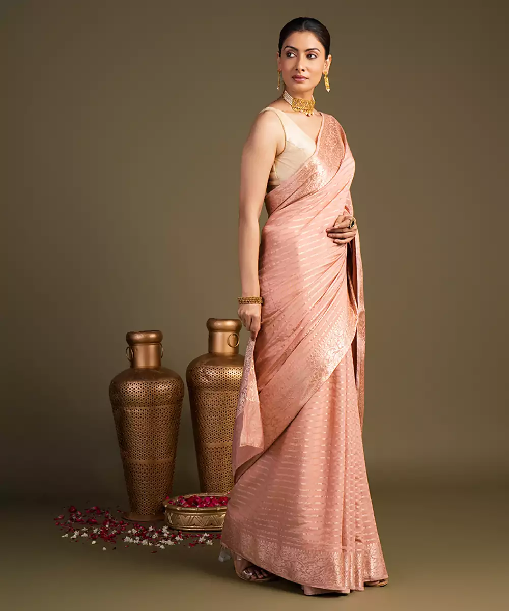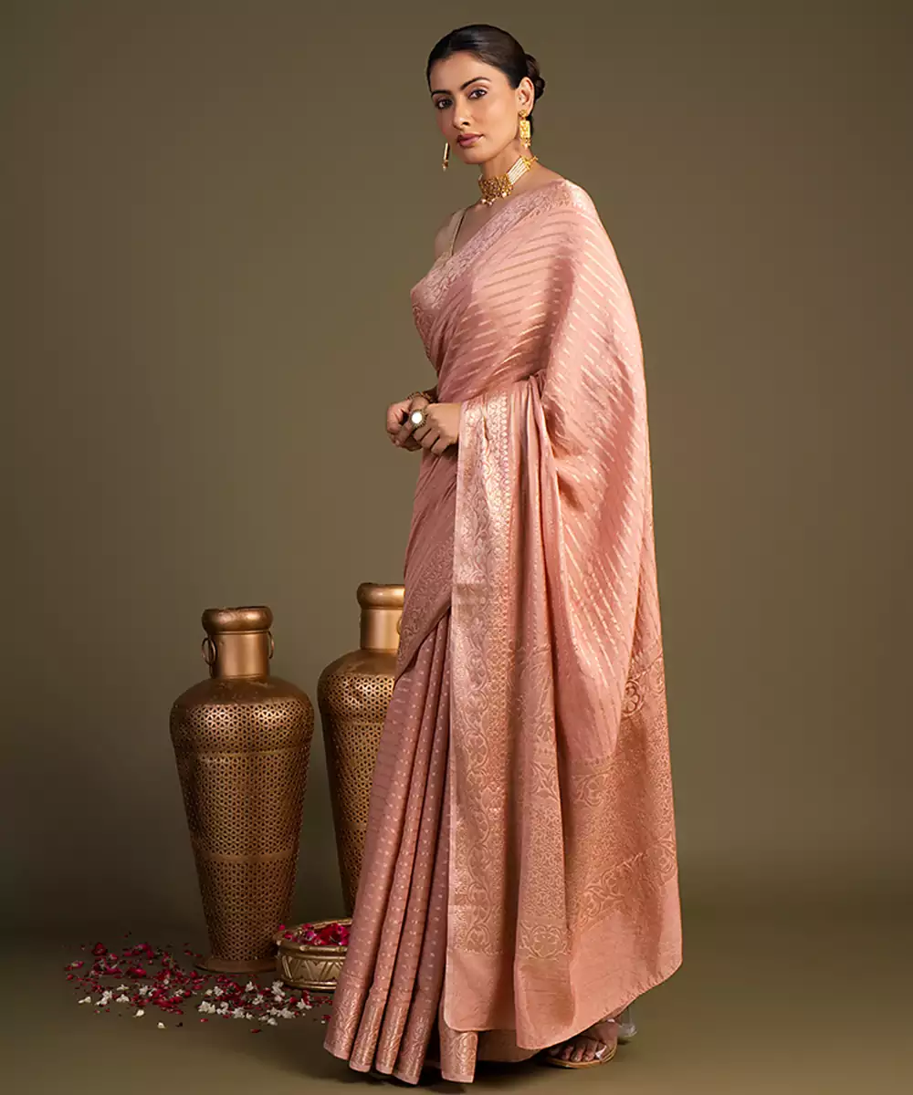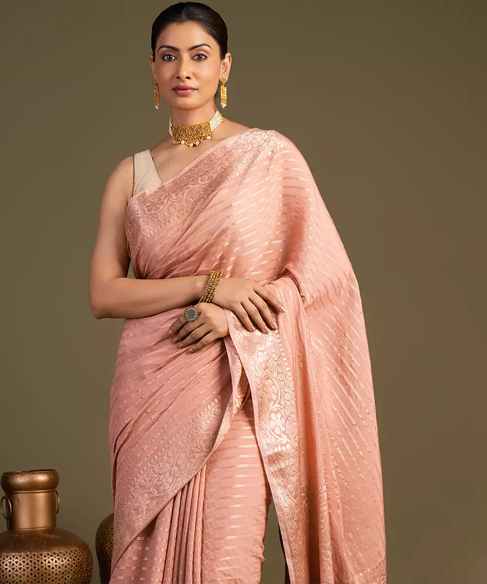 Peach Handloom Banarasi Silk Saree