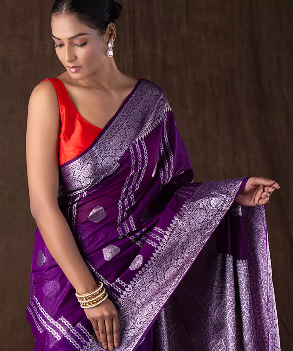 Purple Handloom Pure Silk Saree
