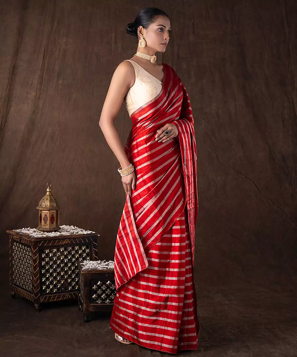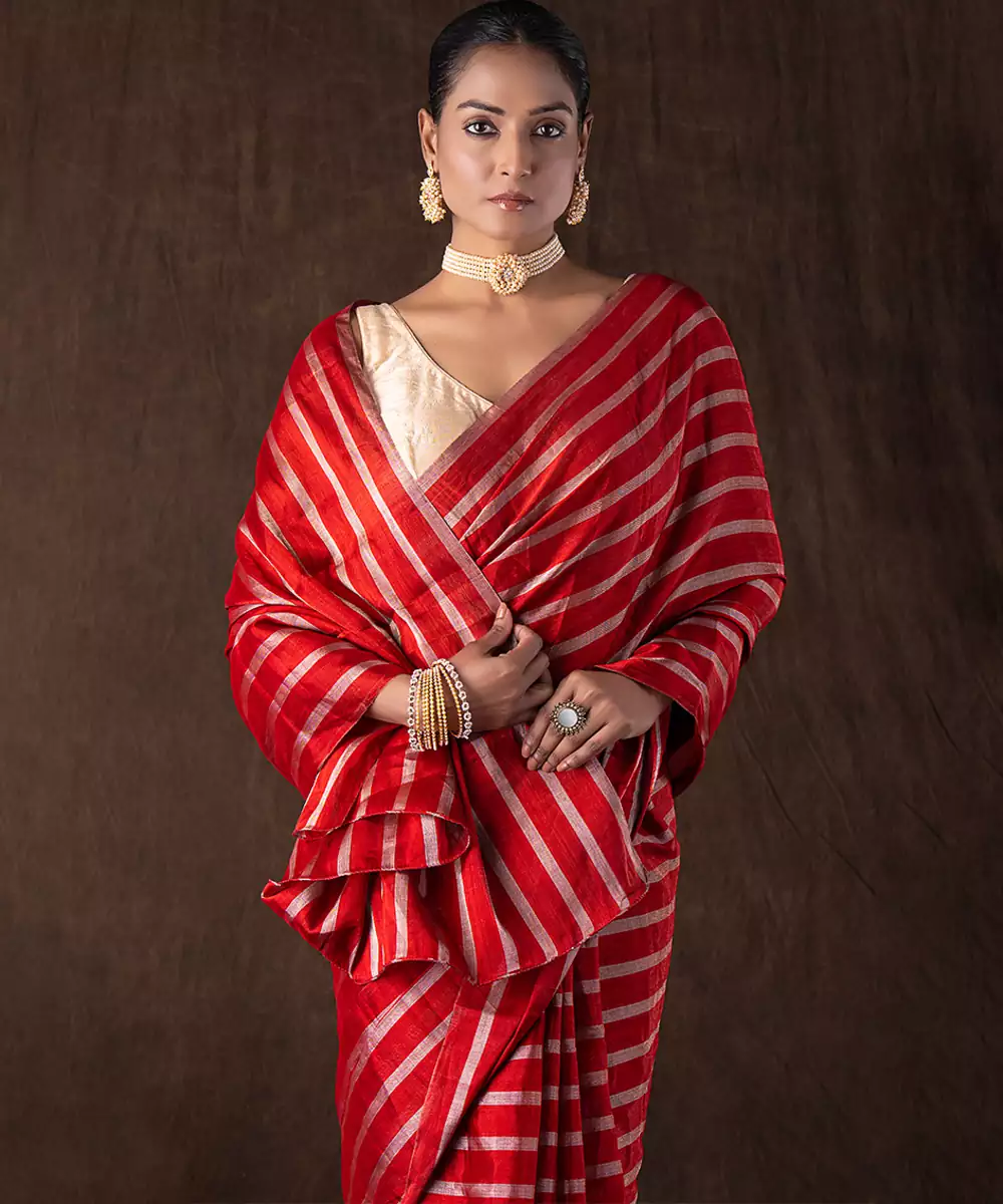 Red Handloom Chanderi Silk Saree